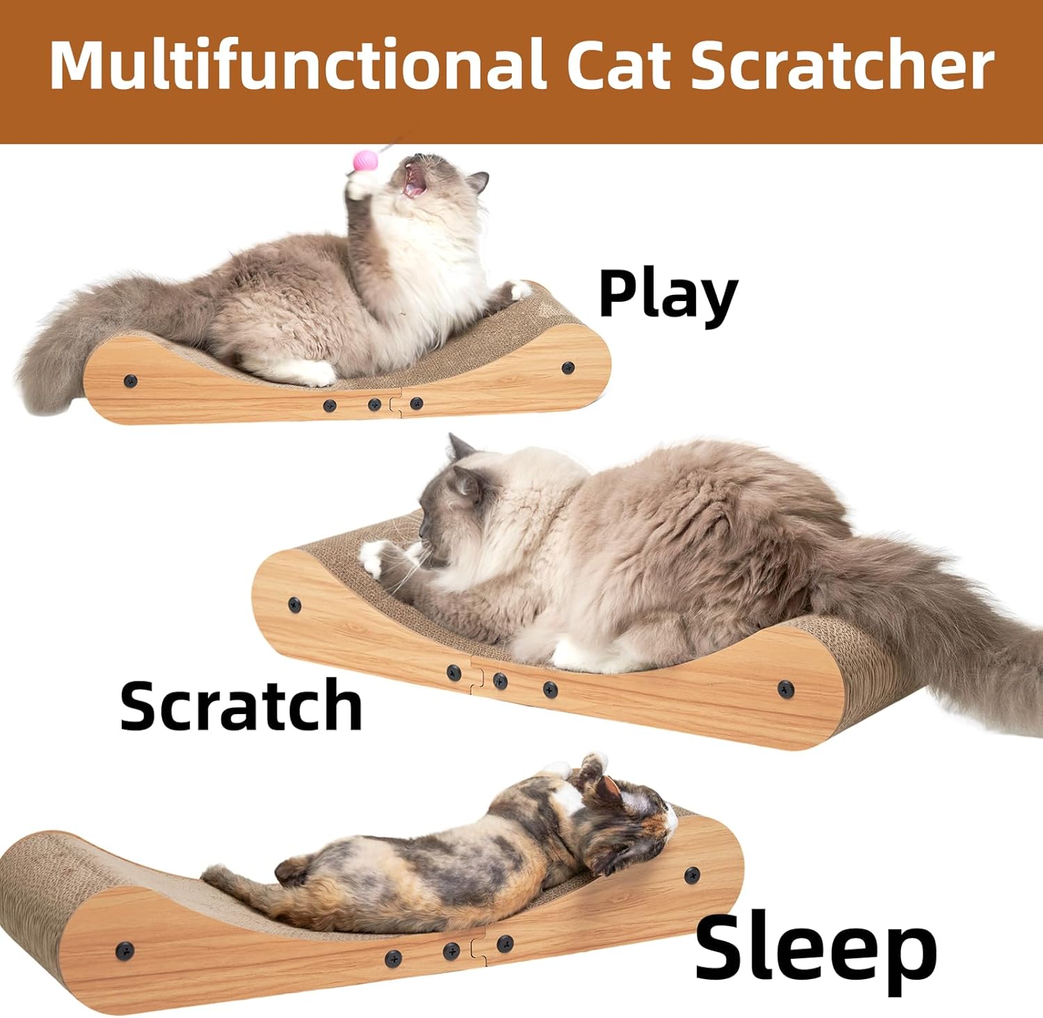 - Unique Design - Featuring with unique curved design, the cat scratching bed provides a support for your furry friend’s neck. The curved structure of the cat bed is specially designed for cats, and it is easy for cats to nap, play and scratch.