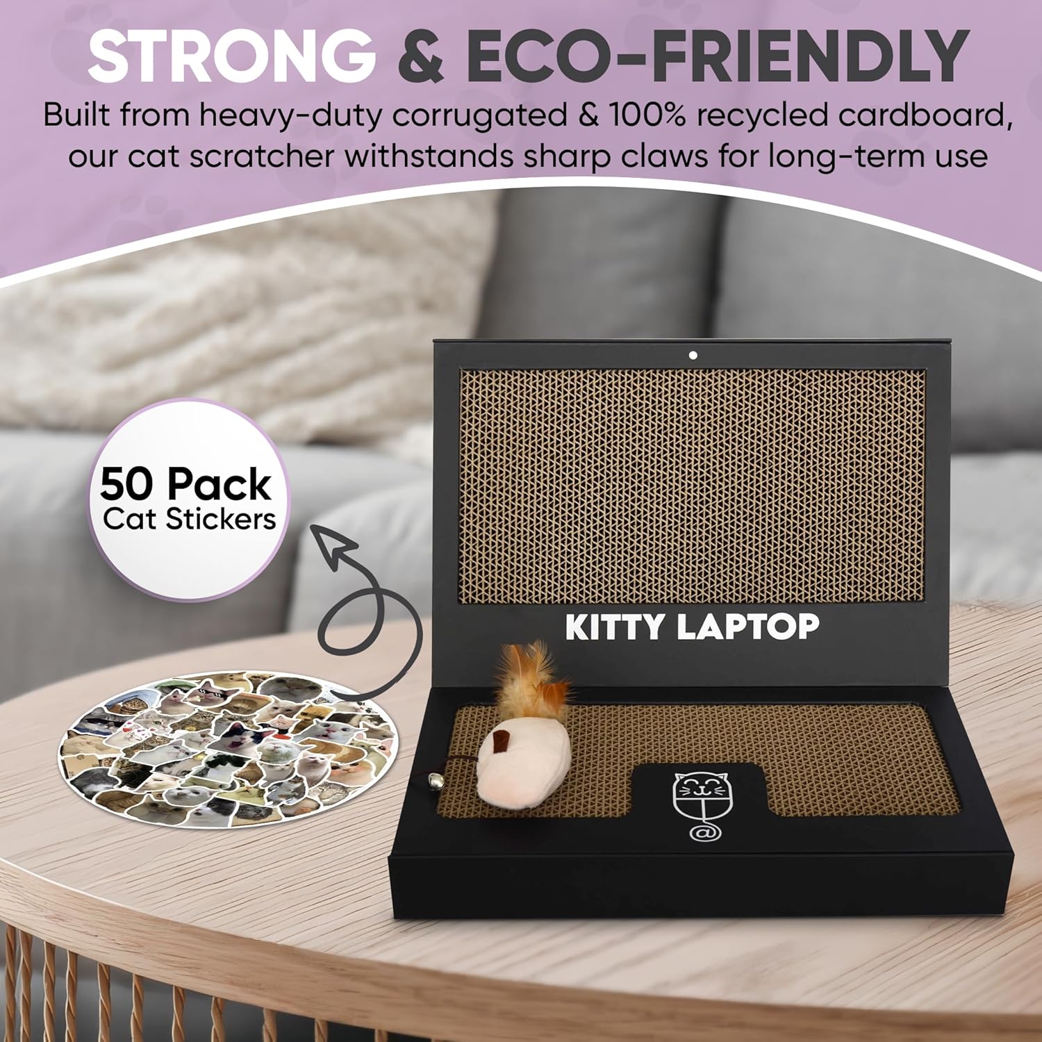 - ๐น READY TO PLAY: Dive into fun right out of the box! Our cat scratch pad laptop comes pre-assembled, saving you time and hassle. Inside, a multi scratch pad for cats laptop, an interactive mouse cat toy, and 50 stickers for customization.