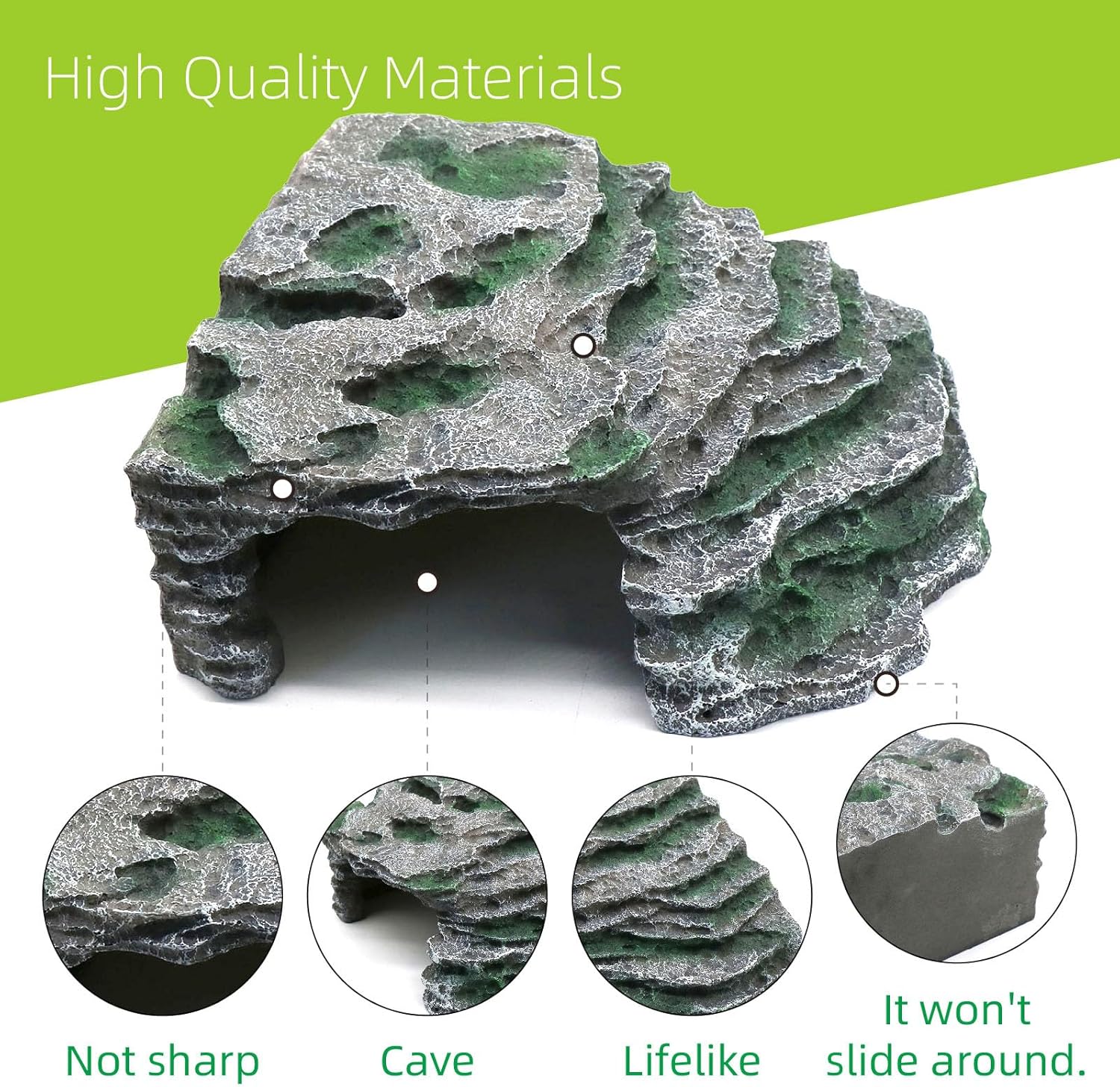 - [Realistic Rock Formation]: The Rock Formation Cave are naturalistic decors Designed, The cave entrances to be used not only as a dark Den for your reptile but also as a humid hideaway