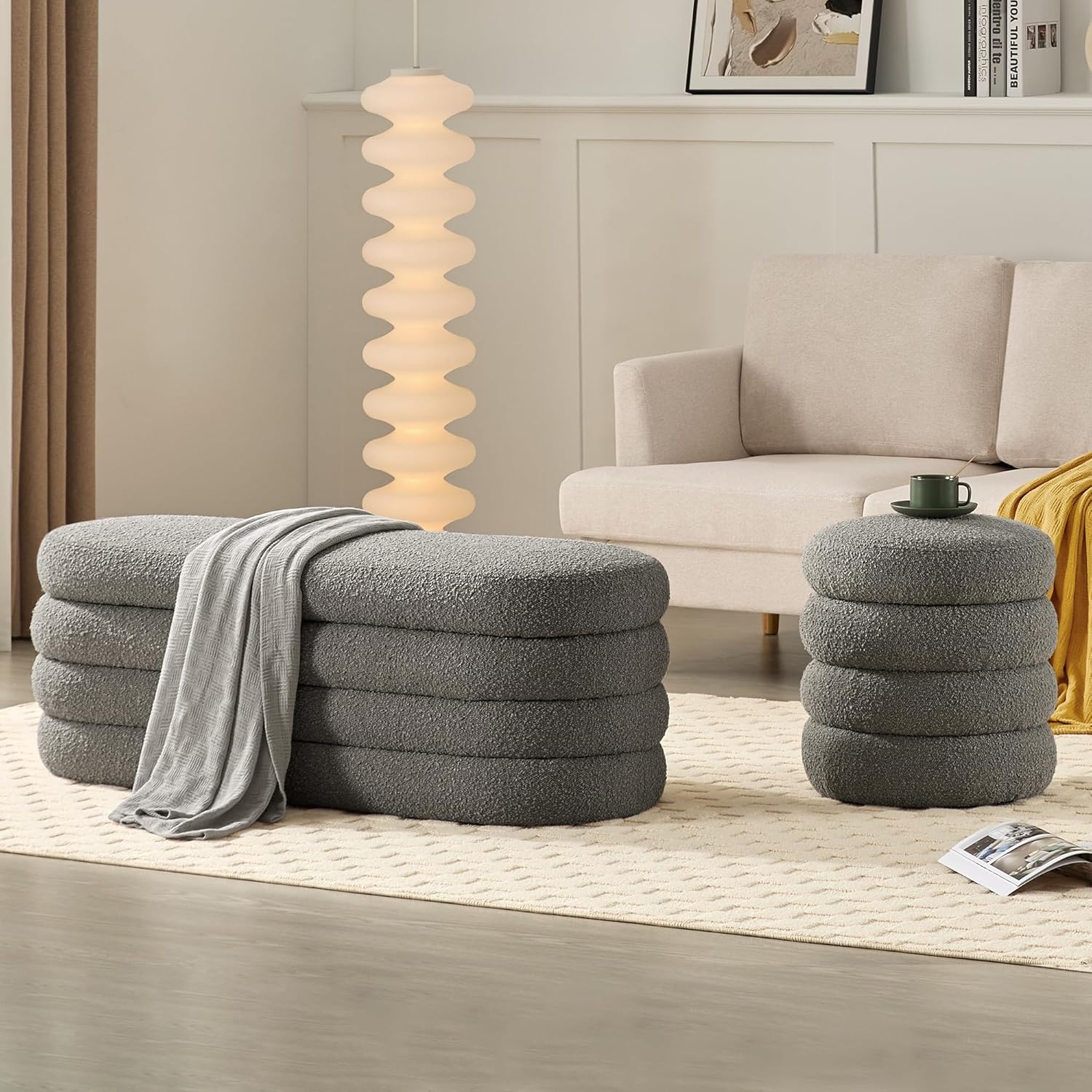 Storage Ottoman Bench 49.2 Inch Upholstered Fabric Storage Bench for Bedroom End of Bed Aesthetic Large Oval Ottoman for Living Room(Grey)