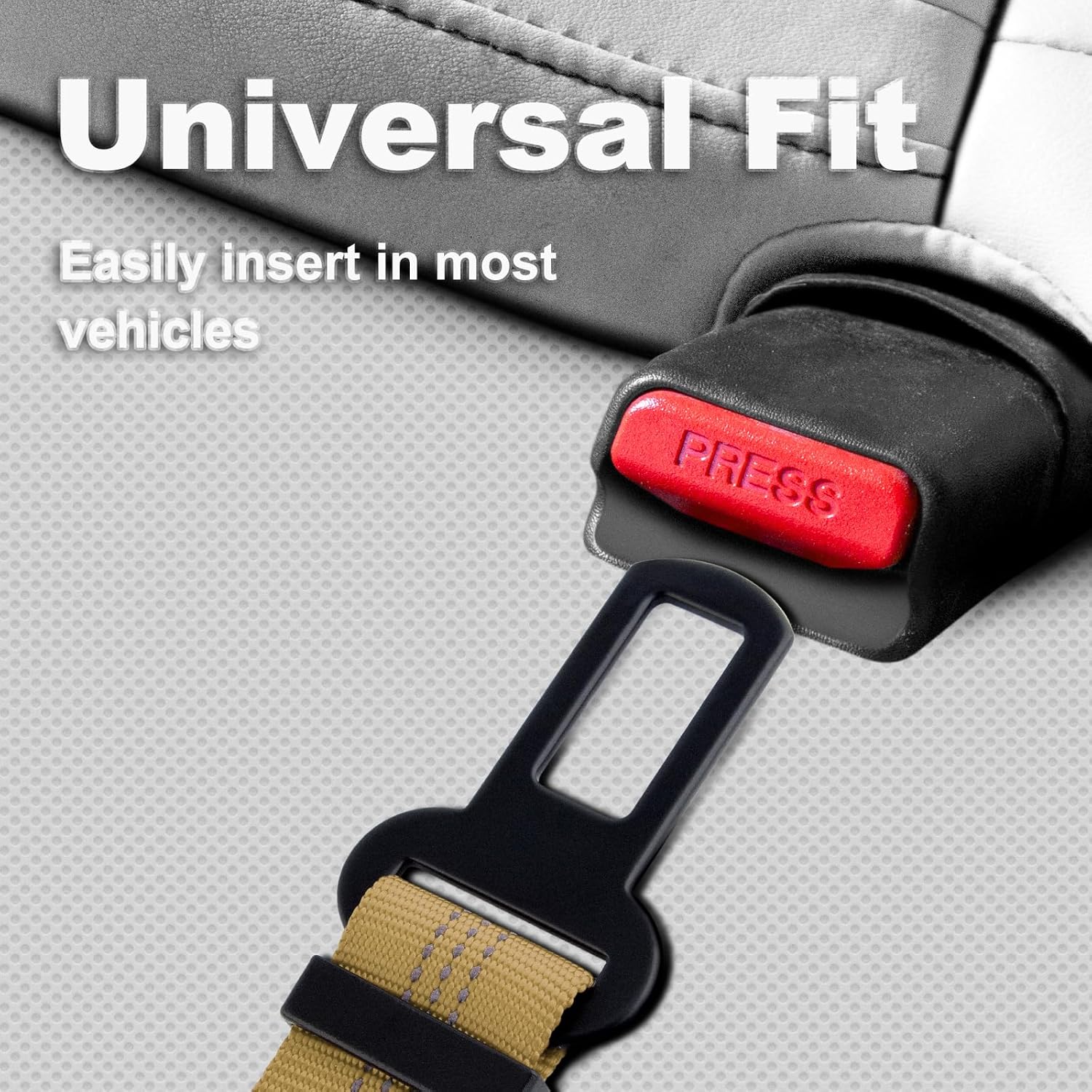 - Universal Buckle. Our seat belt features a universal buckle that fits most cars. In some case, this seatbelt can be used as a dog leash, and the reflective strips increase visibility, making your dog easily noticeable in low-light conditions.