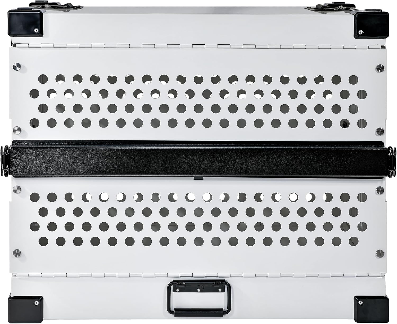 - SAFE AND SECURE: Constructed of durable lightweight aluminum and thoughtfully engineered with your dog’s safety in mind. Strong and secure design to ensure your pet is safely contained at all times. Includes 16 knurled bolts giving you the option to quickly increase the overall rigidity and strength of your crate.