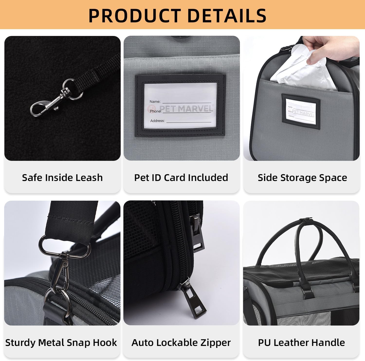 - Thoughtful Features: PET MARVEL cat carriers have 4 mesh windows for ventilation and 3 wide doors that can be opened for easy access. An additional generous side storage pocket collects more stuff like water bottles, snacks and wipes. Equipped with a secure buckle to prevent your pet from escaping.