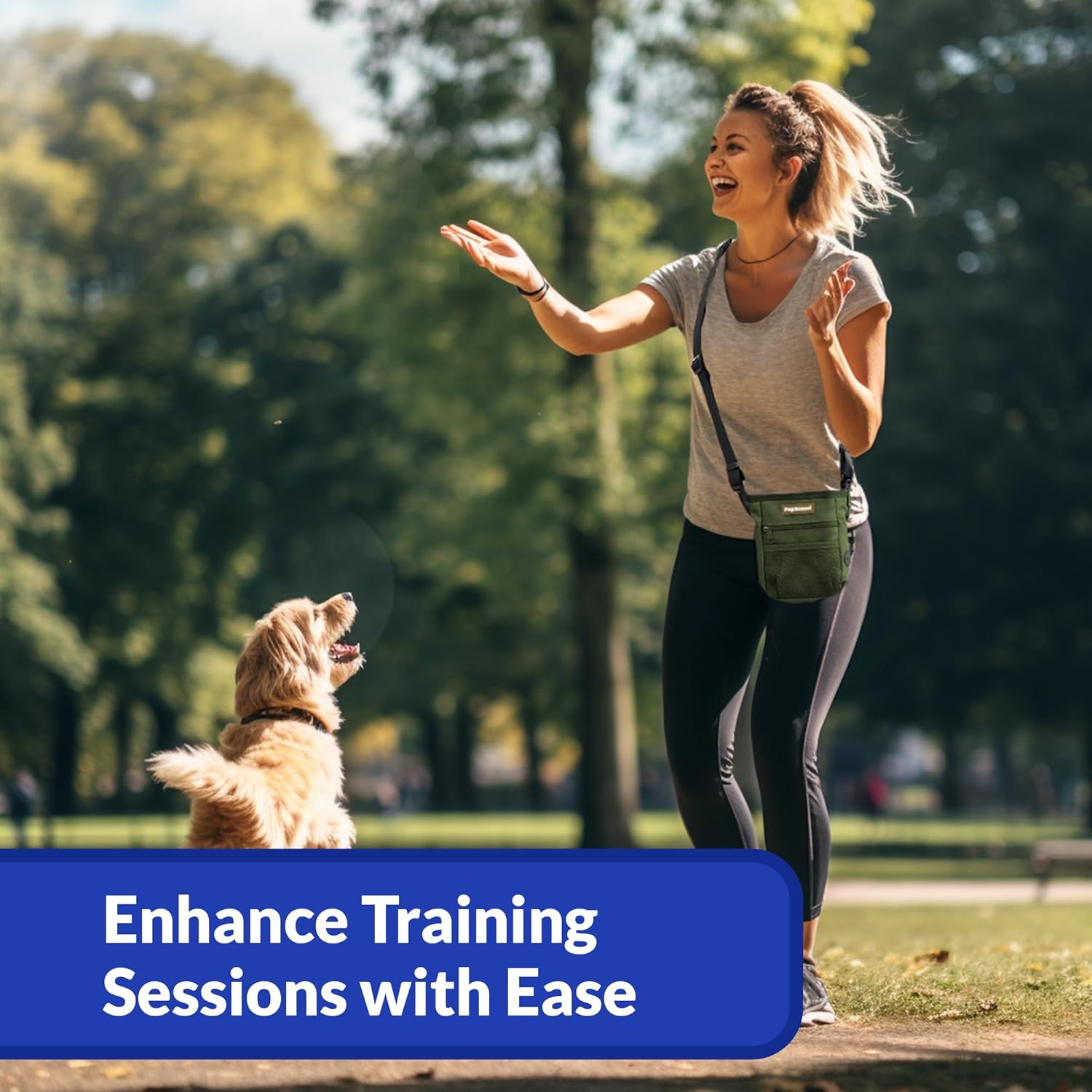Dog Treat Pouch, Durable Oxford Polyester, No-Spill Magnetic Closure, Treat Pouches for Pet Training with Metal Clip, Waist Belt, Adjustable Strap, Poop Bag Dispenser (Army Green)