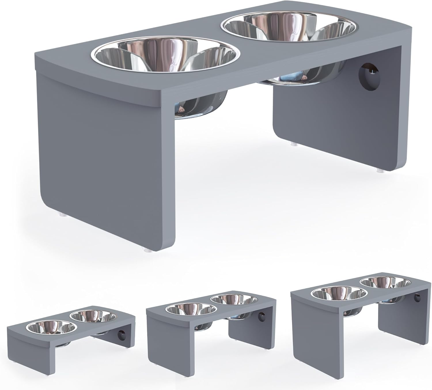 • A BIG MESS OR NOISY? Weights 4 lbs and equipped with upgraded screws, our elevated dog bowl stand prevent naughty dogs from knocking bowls around and provides protection for your floors. The silicone mute gasket included which eliminated the impact sound when pets are eating.