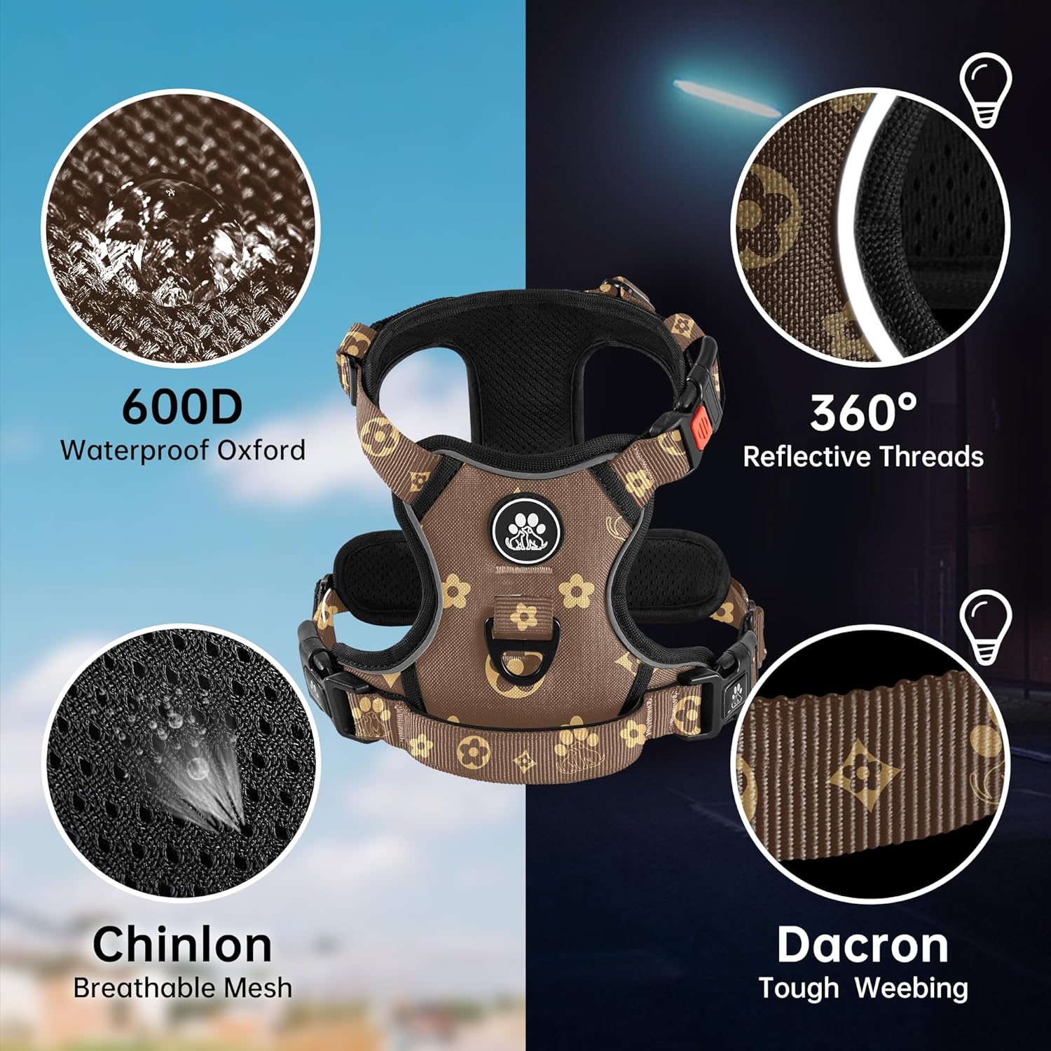 - 【EASY ADJUSTMENT】This no choke dog harness design with 4 fully adjustable straps (2 shoulder and 2 chest straps) which can be adjusted to the most fitting size, prevents the dog from breaking free while maintaining maximum comfort