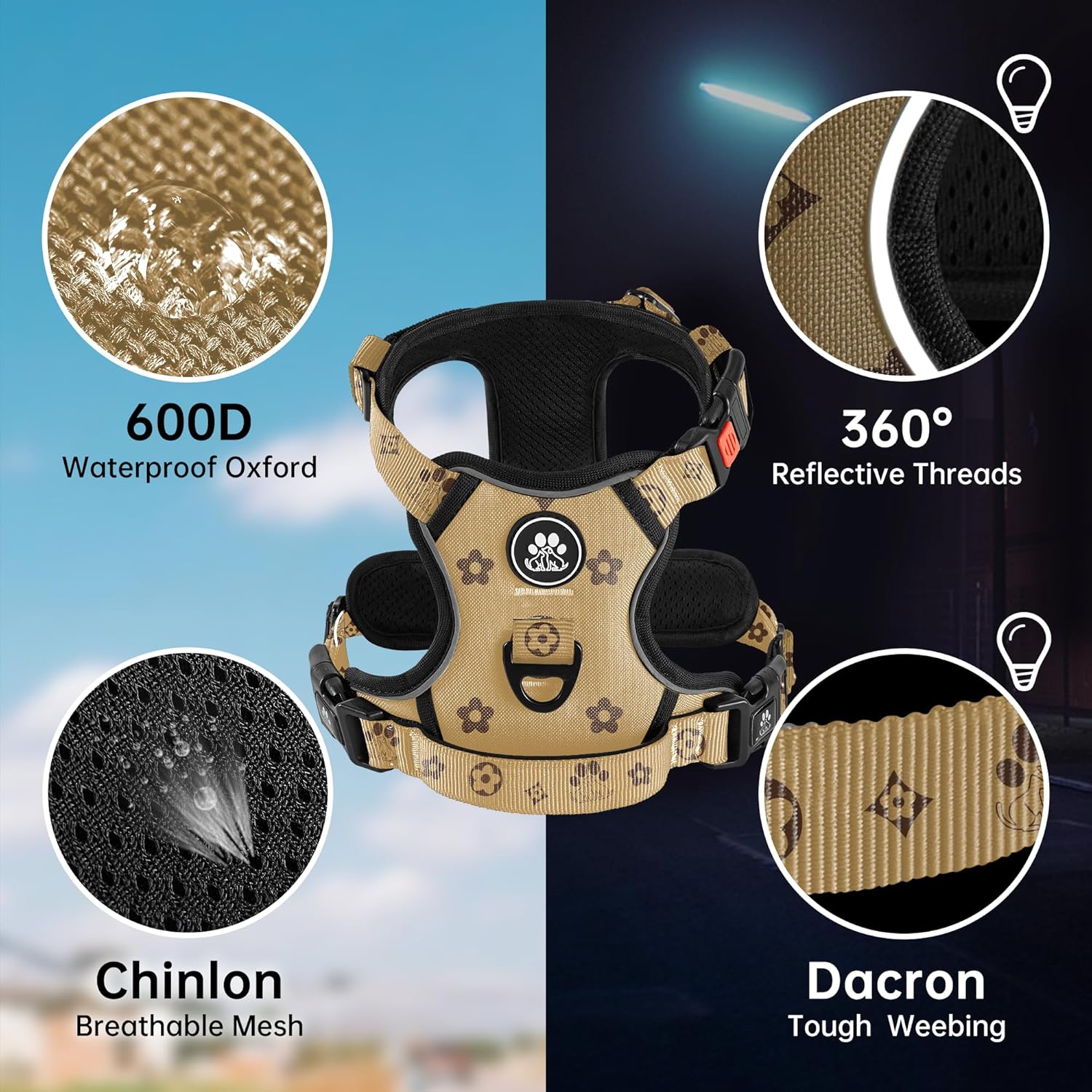 - 【EASY ADJUSTMENT】This no choke dog harness design with 4 fully adjustable straps (2 shoulder and 2 chest straps) which can be adjusted to the most fitting size, prevents the dog from breaking free while maintaining maximum comfort