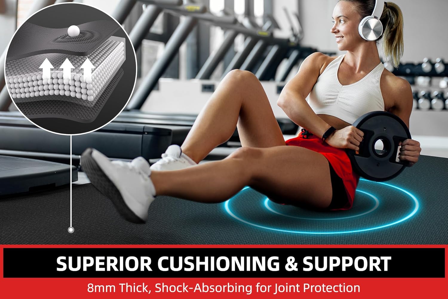 - ๐ช Ideal for High-Impact Workouts, Can Be Used with Shoes: Featuring 8mm/10mm thick cushioning, our gym mats are specially designed for high-impact exercises like weightlifting, kettlebell swings, or cardio workouts. Protect your joints and floor while staying comfortable during intense training sessions.