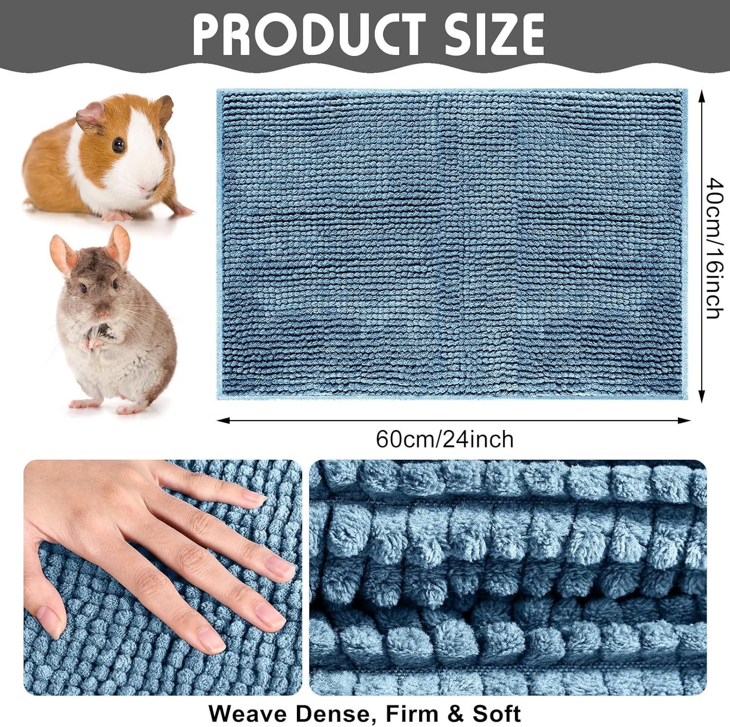 - Proper Size for Small Pets: our guinea pig cage liners come with a size of about 16 x 24 inches/ 40 x 60 cm, suitable for small animals, such as guinea pigs, rabbits, chinchillas, squirrels, hamsters, rats, puppies, hedgehog, ferrets, cats and other similar size small pets, and can also serve as dog bowl pads or cat litter pads to keep areas clean and tidy