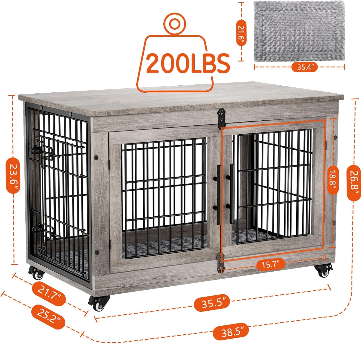 - [Reliable & Secure Design] Furniture dog crates are useful training tools for puppies. Dog crates for large dogs feature 5mm fence, this piece of dog crate furniture is sturdier and more chew-resistant than wooden dog crates. Pet crate furniture uses rotating "Bones" With a door stopper design to increase firmness and avoid dog break out it.