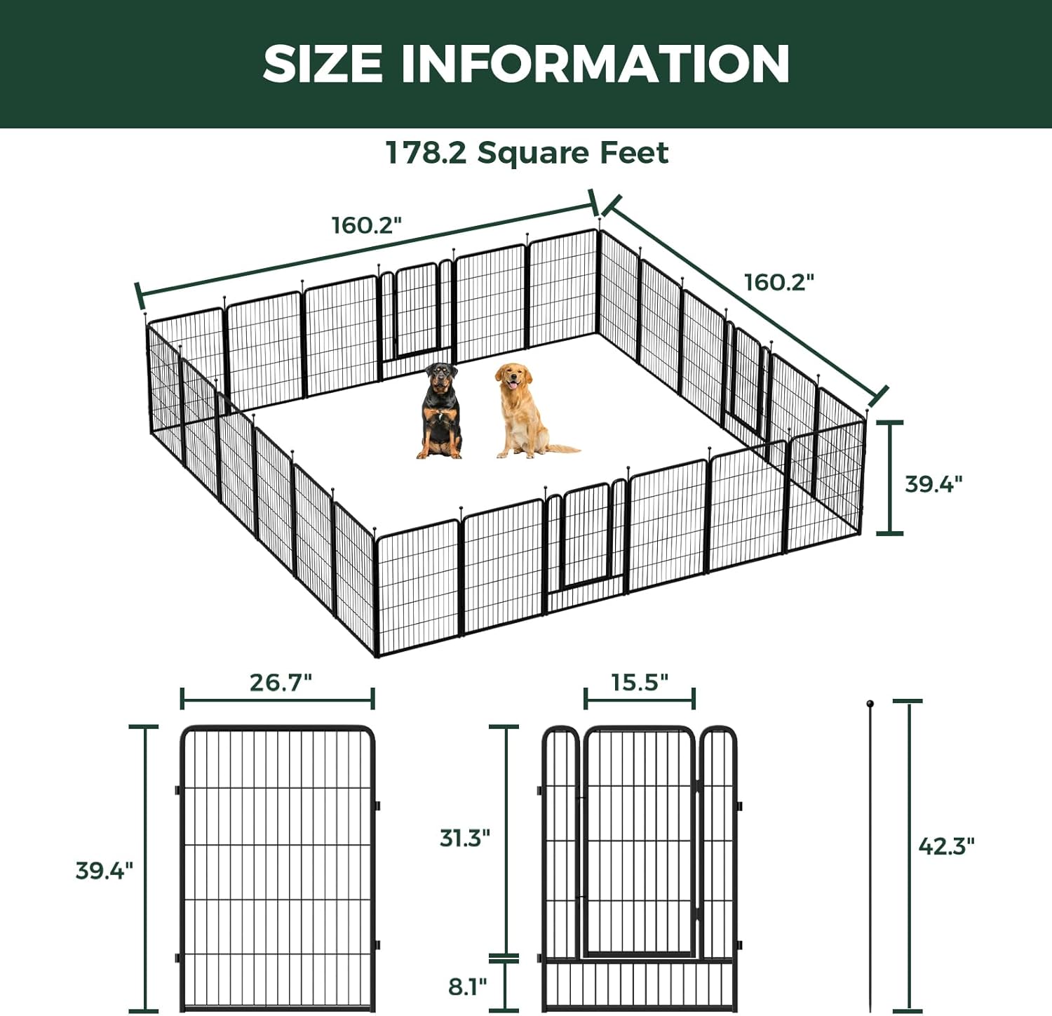 - Super easy to assemble: It won’t take you more than 5 minutes to assemble these portable dog fences as well as pack them away due to the rod-connected design. Meanwhile, panels can be added or removed freely to give you a fully flexible area and arrange the dog pen in any shape you need.