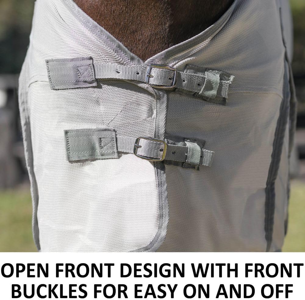 - 80% UV PROTECTION FOR ALL BREEDS – Expertly crafted with a 300D polyester interlock mesh, these fly sheets offer 80% UV protection, ideal for horses, ponies, and minis, ensuring their safety under the sun.