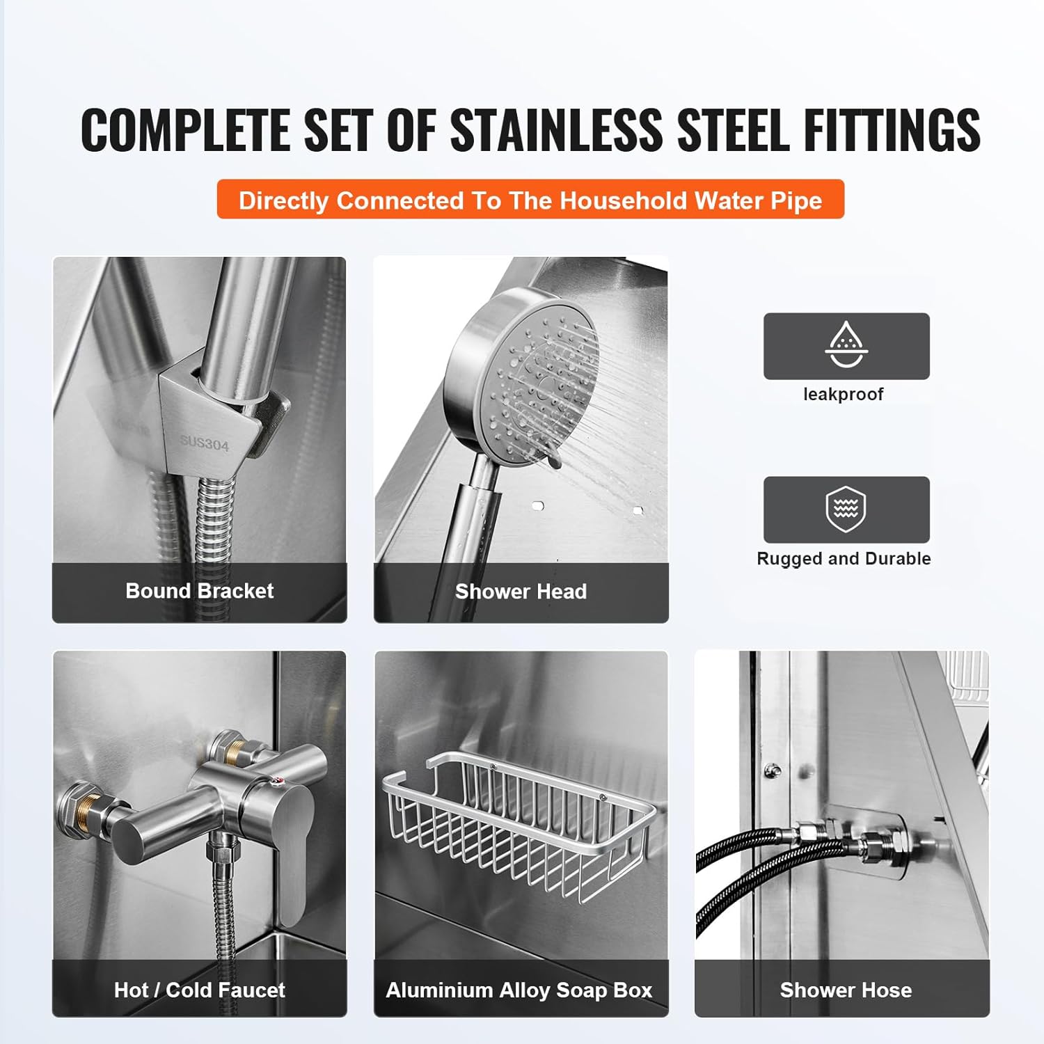 - Durable Stainless Steel Accessories: Our product includes a stainless steel showerhead, faucet, and bracket, all of which are rust-resistant and built to last. Additionally, we've included an aluminum alloy soapbox for long-term storage of bathing products, ensuring durability.