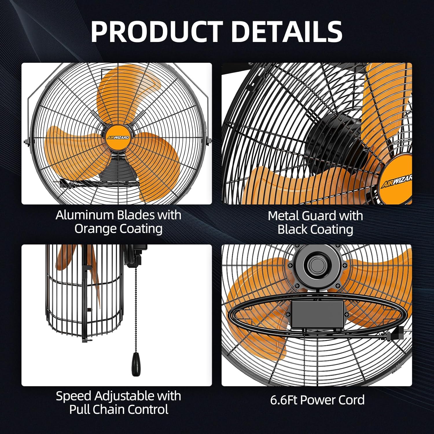 - PERFECT FOR COMMERCIAL AND RESIDENTIAL - AIRWIZARD 20 inch wall-mounted fan is ideal for cooling down your home, garage, basement, gym room, greenhouse, workshop, factory or warehouse. ONLY FOR INDOOR USE. If you have any suggestions, please feel free to contact us.