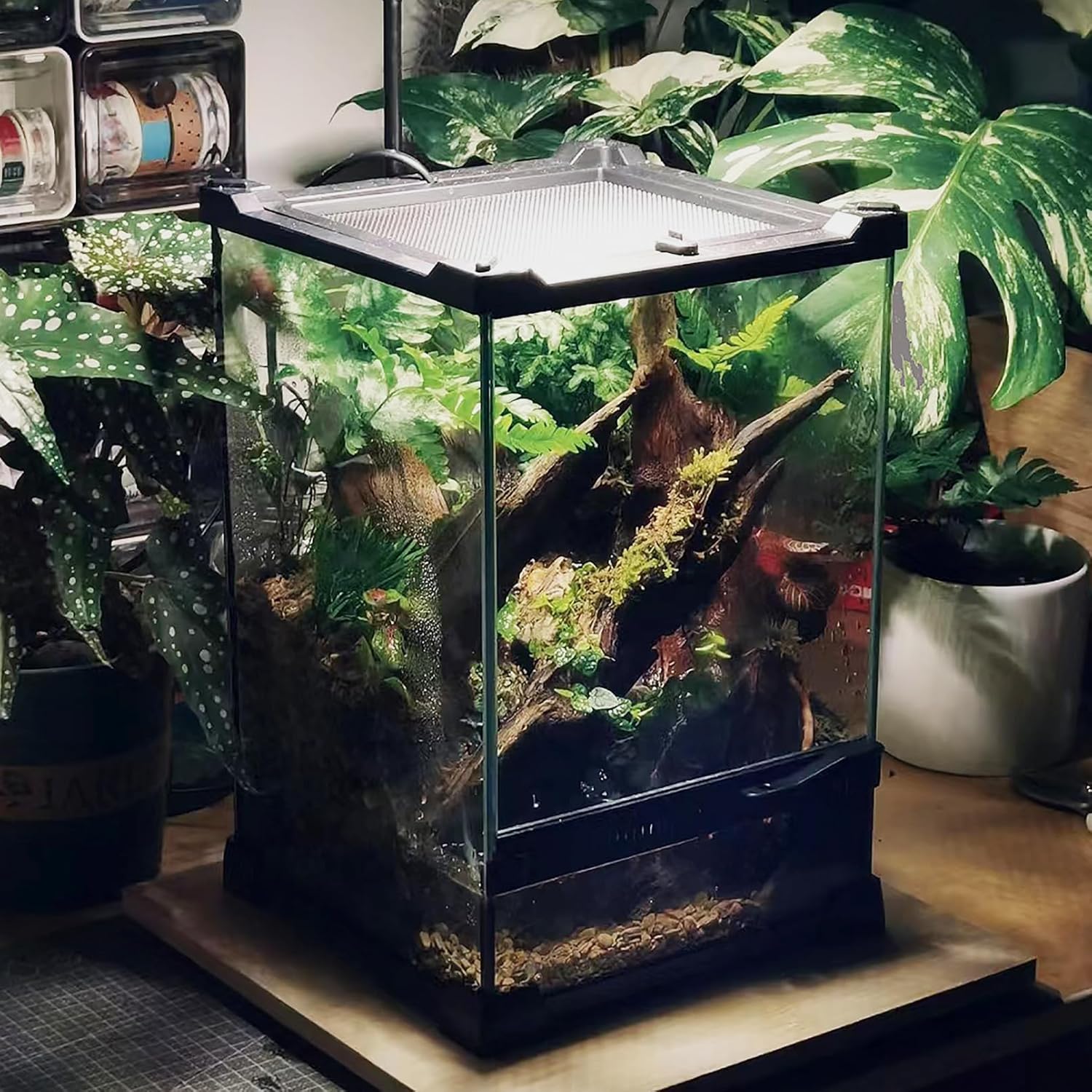 - 【Full Glass Reptile Tank】- What you get is a 8x8x12 inch tank, a perfect habitat for your small arboreal reptile or amphibian, this tank is made of thickened glass, high-quality plastic and metal mesh, and the integrated design requires no installation, which is durable and beautiful.