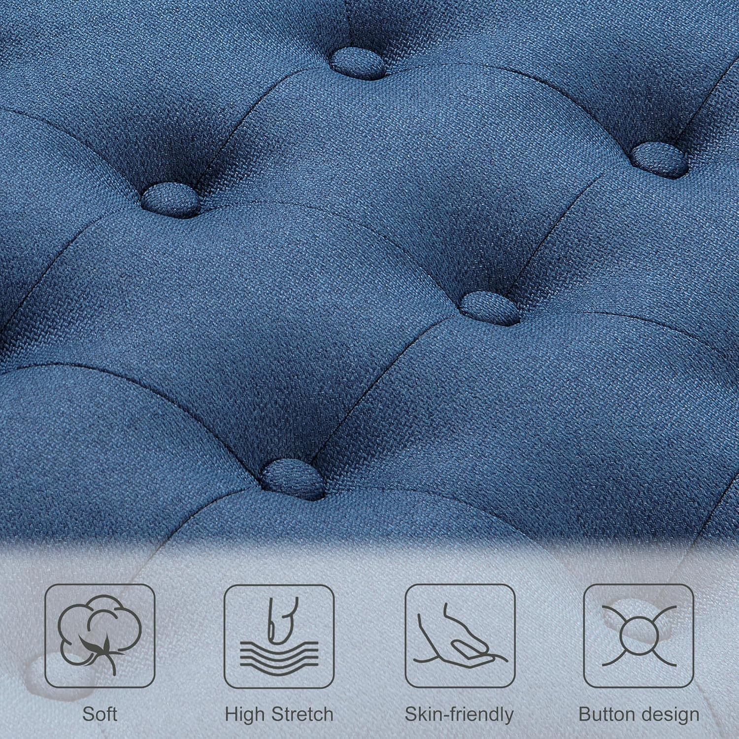 Ottoman with Storage,50.2-inch Upholstered End of Bed Storage Bench for Bedroom,for The Living Room,for Entryway, with Rivets & Button and Safety Hinges,Detachable (Blue)