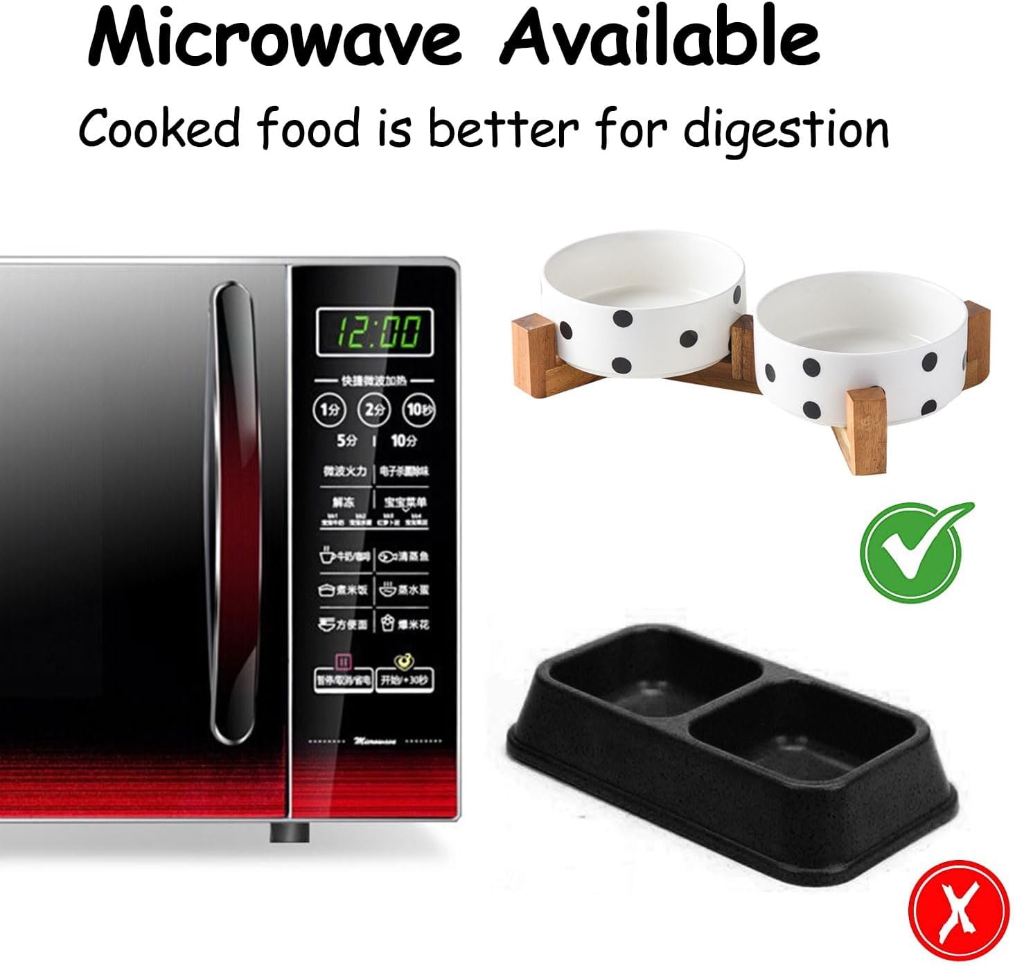 - Double Bowl Design:One dog bowl for food and one for water, Each ceramic cat bowl has a Unique wooden stand, raising the dishes closer to your pet for more comfortable eating