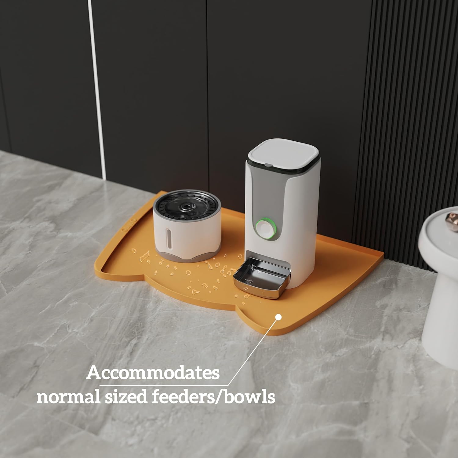 - ๐พHigh & Thick Edges: Pet feeding mats with 0.6"raised edge can effectively collect residues and spills, minimizing dirt and mess, and keep the floor clean and tidy; The 0.1 inch thickened edge makes the mat less likely to bend or be torn up by pets,giving you a long-lasting and durable pet bowl mat.