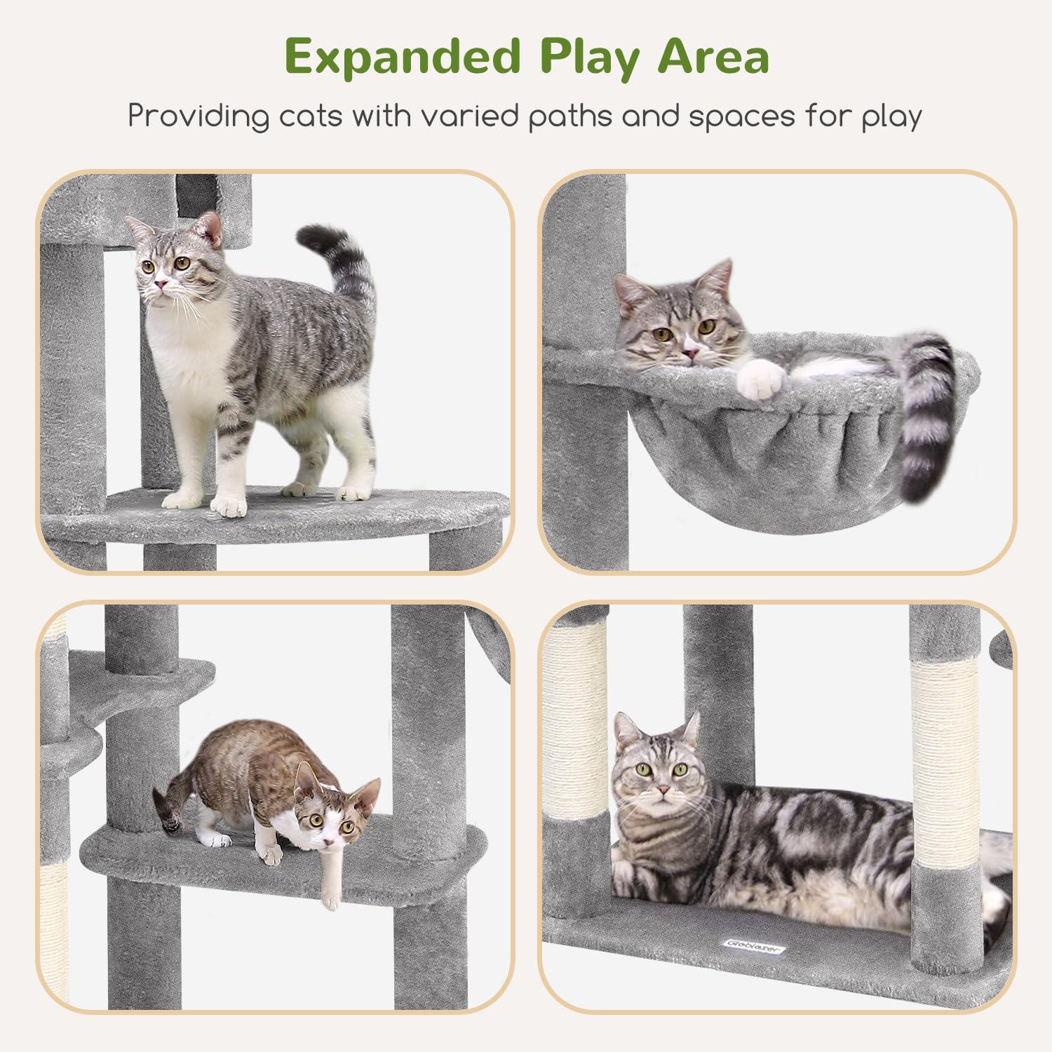 Globlazer Giant Cat Tree, 83 inch Cat Tree for Indoor Cats Large Adult, XXL Cat Tower with 9 Scratching Posts for 20lb+ Heavy Duty Large Adult Cats, F83, Light Grey