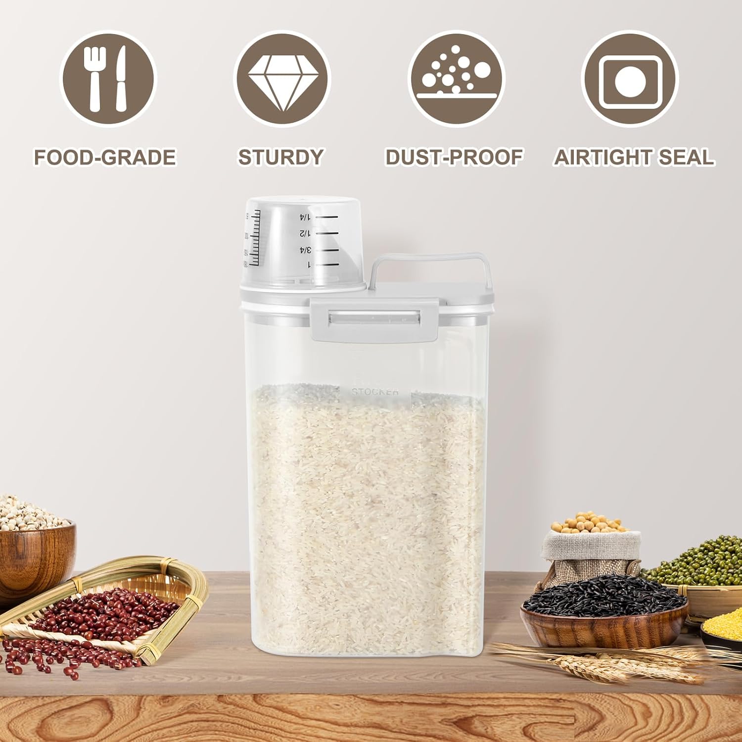 TBMax Rice Storage container 4 Lbs, Small Rice Dispenser with Measuring Cup, Grey Cereal Containers Flour Bin, Kitchen Food Storage Container and Pantry Organizers, Pet Dog Cat Food Dispenser
