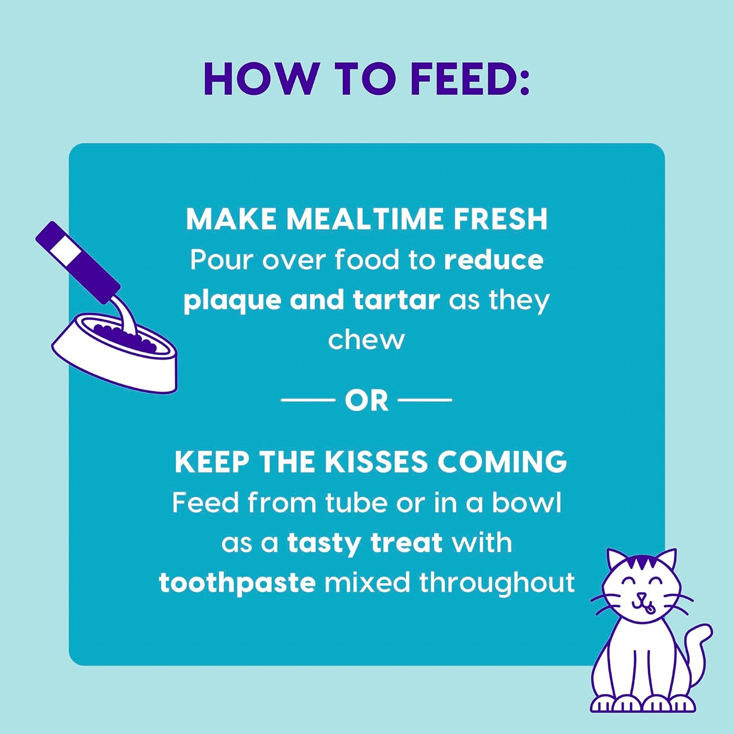 - Pour over food to reduce plaque and tartar as they chew.