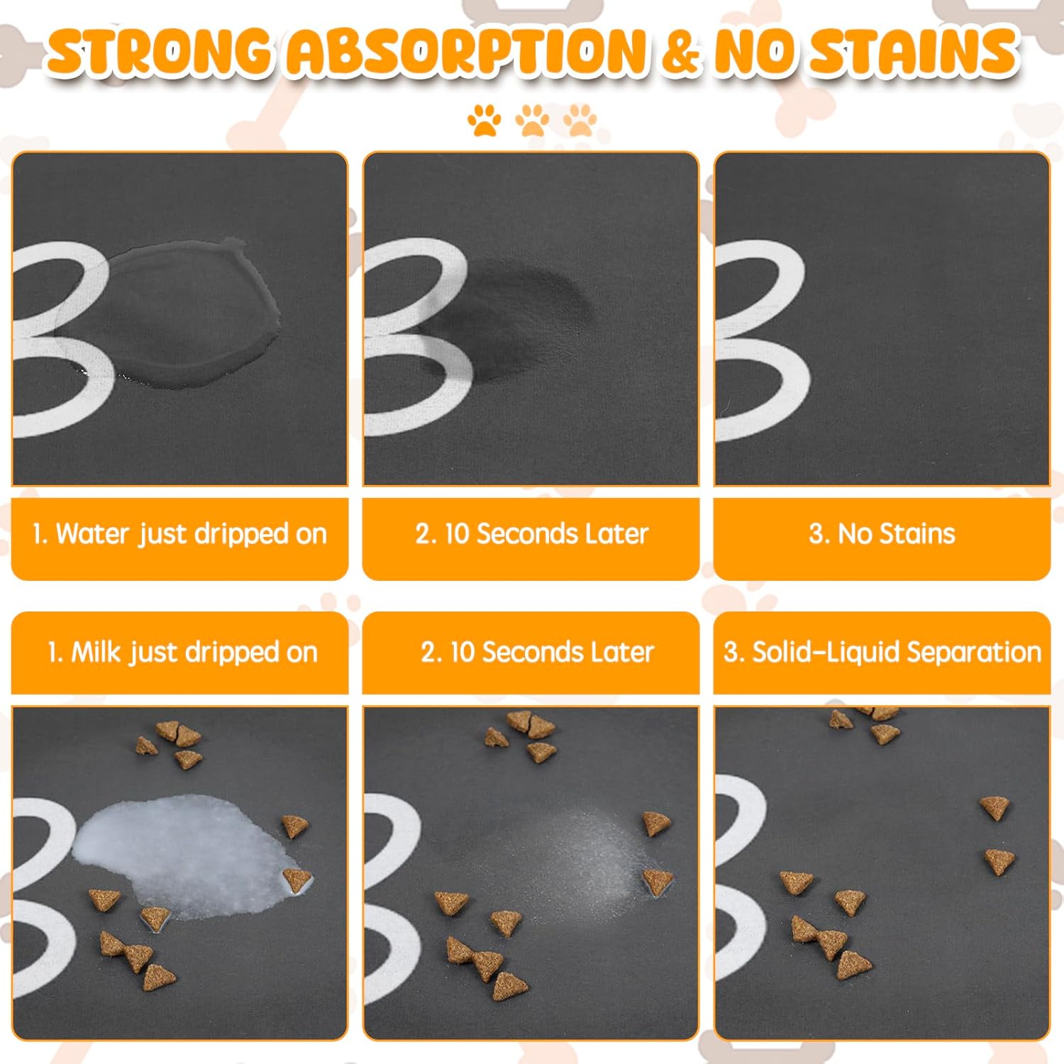 Dog Food Mat, 36" x 24" Extra Large Absorbent Dog Mat for Food and Water, Non Skid Cat Bowl Mat, No Stains Quick Dry for Pet Water Dispenser Pet Supplies for Messy Drinkers