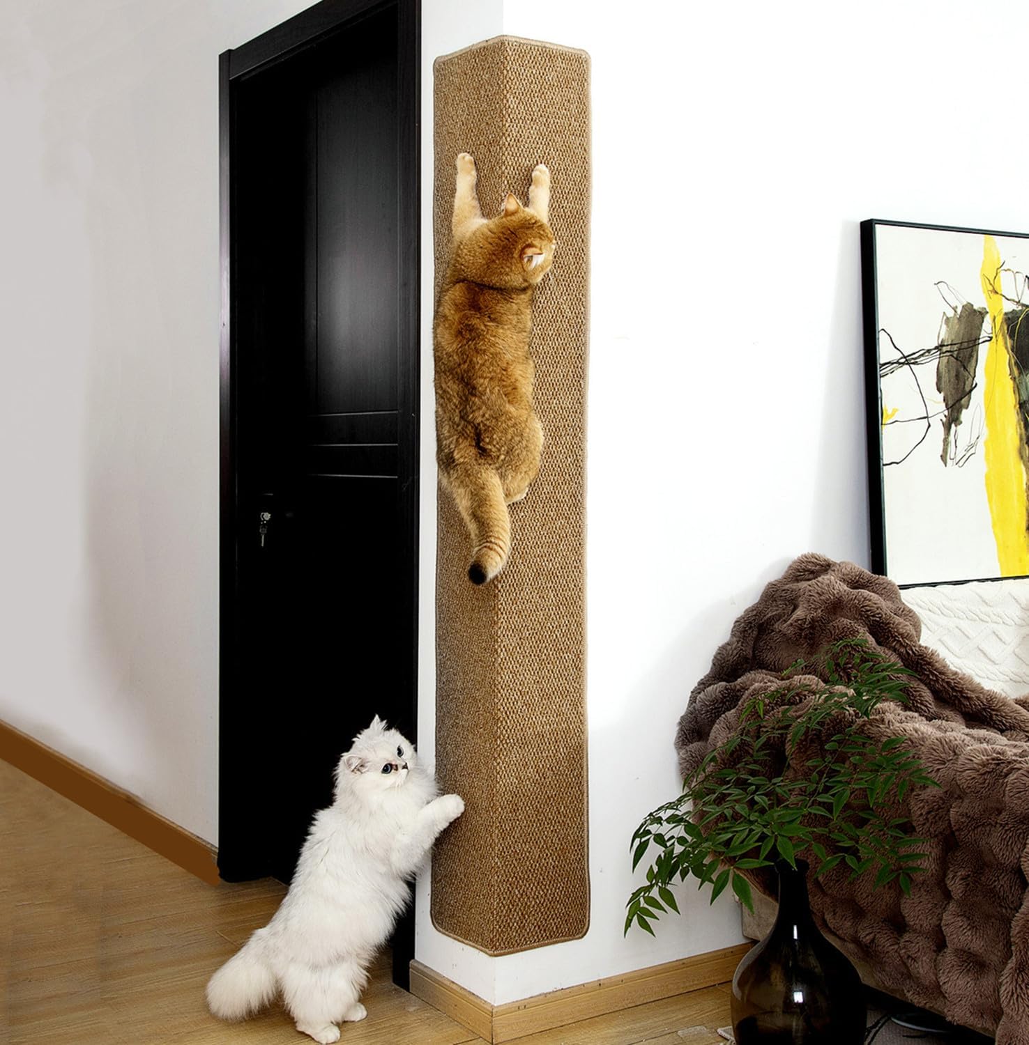 SHENGOCASE Thickened Cat Wall Corner Climbing Carpet, Cat Wall Furniture, Wall Corner Scratcher, Scratching Post (Camel)