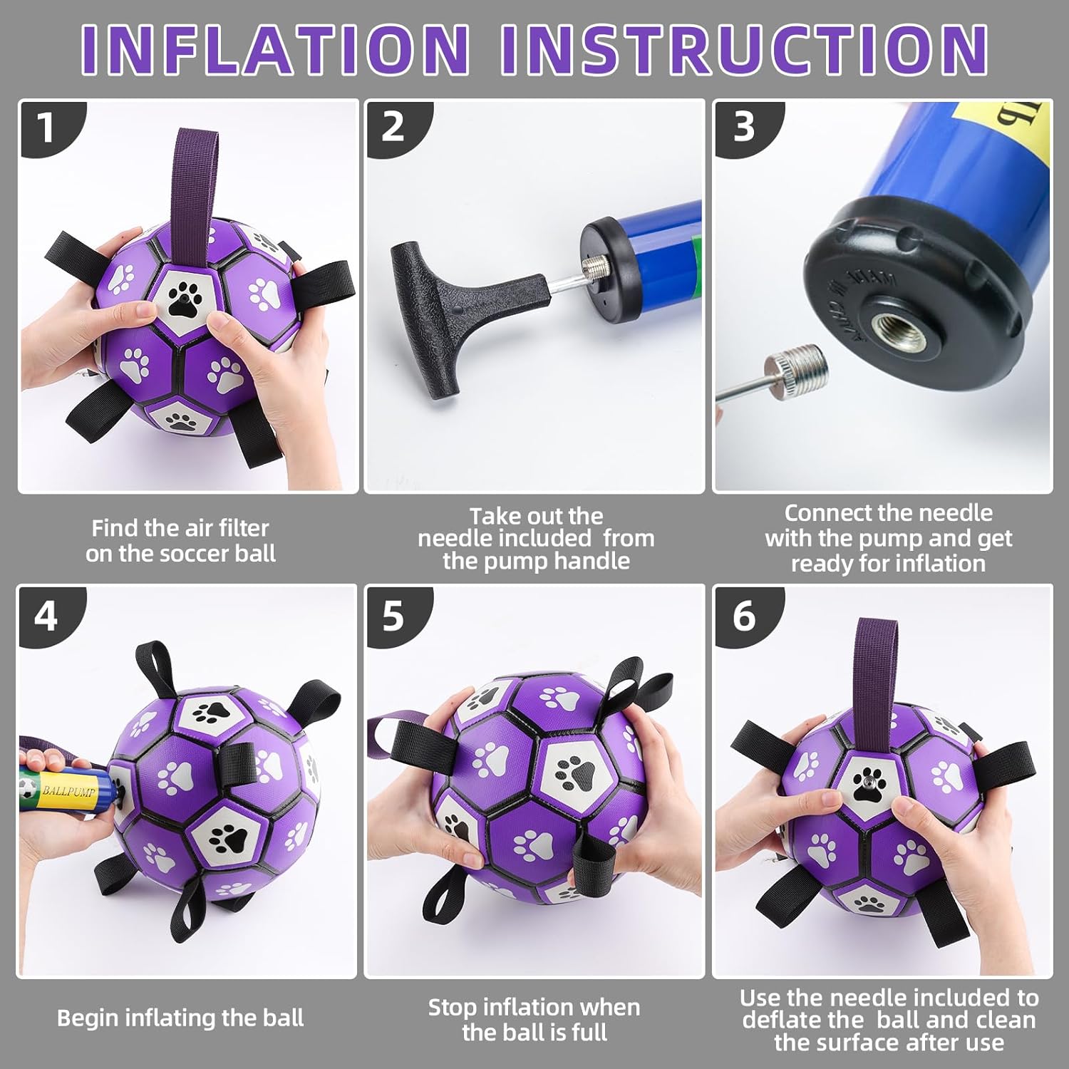 - โฝPump & Needle Adapter Included: The herding balls for dogs come deflated. There's a needle point adapter and a pump inside as well while other items in the same market only include a ball needle. The soccer ball dog toy is 8 inches in diameter, perfect for large breeds, not for aggressive chewers.