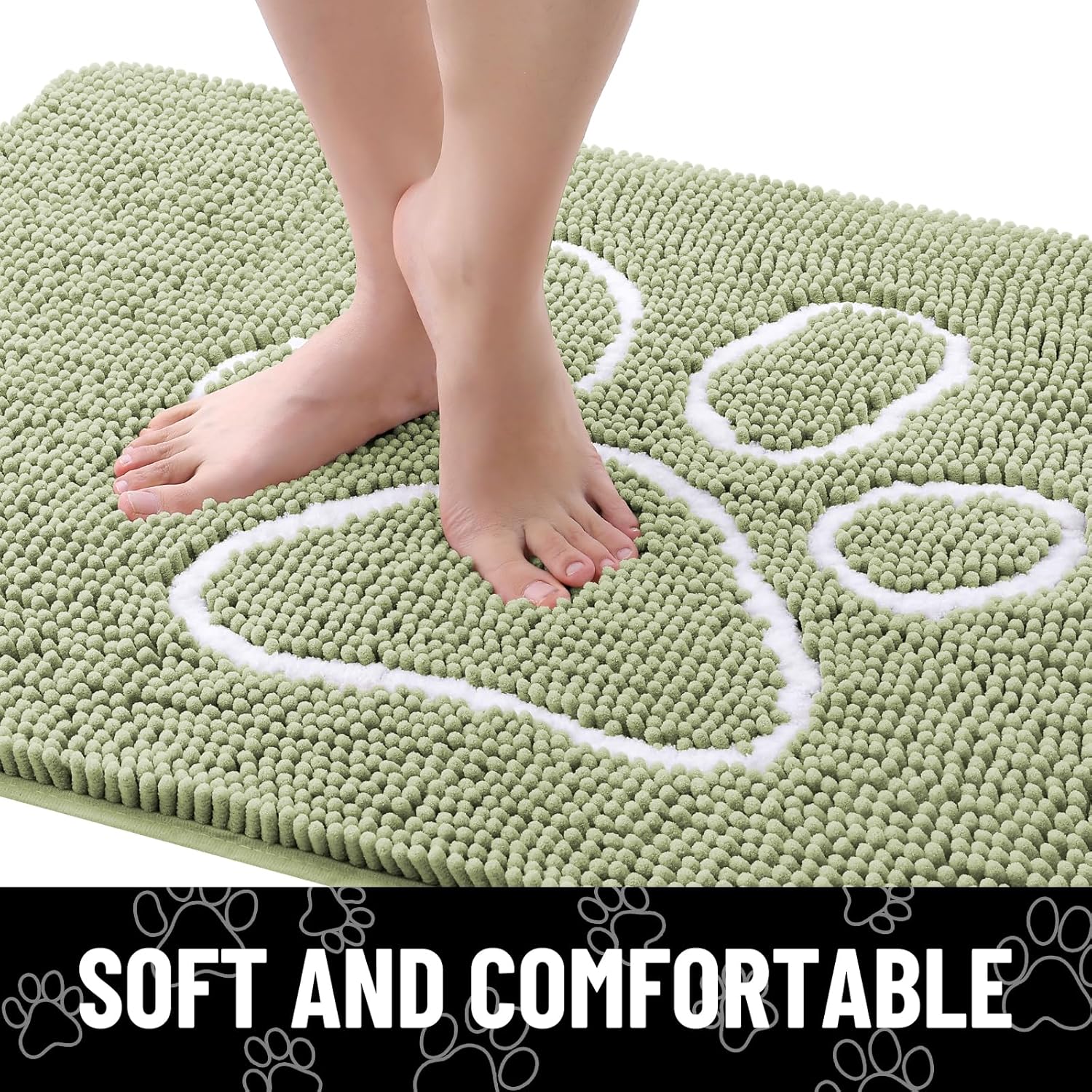 Smiry Dog Door Mat for Muddy Paws, Absorbent Dirt Trapper Non Slip Quick Dry Washable Chenille Mat for Mud Dogs, Entry Rug for Indoor and Outdoor (40x32 Inches, Sage Green)