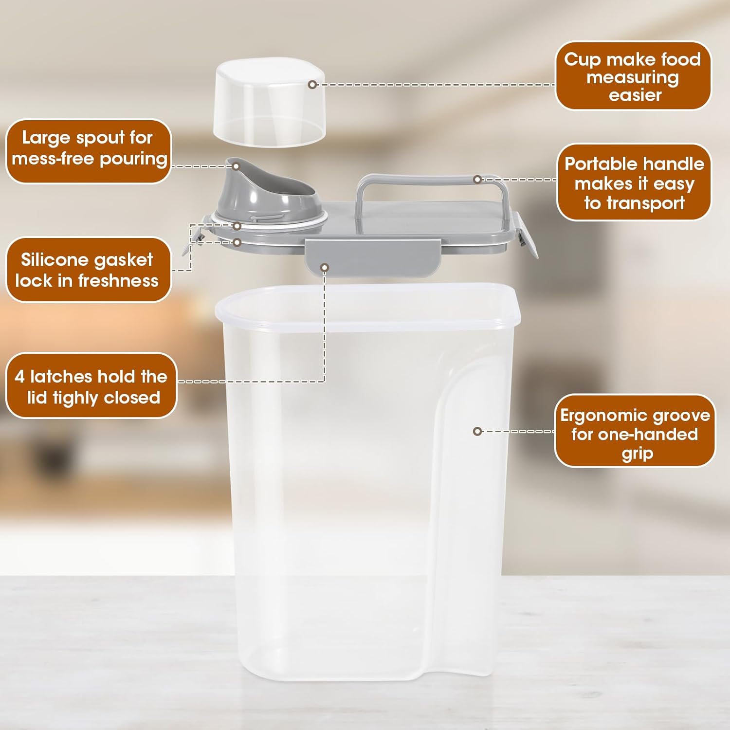 - AIR-TIGHT FOOD CONTAINER: With the snap-lock latches and silicone gaskets, the dog food storage container can shut tightly to ensure pet food stay super fresh, capped with a secure cup for easy measuring and access to your stored food