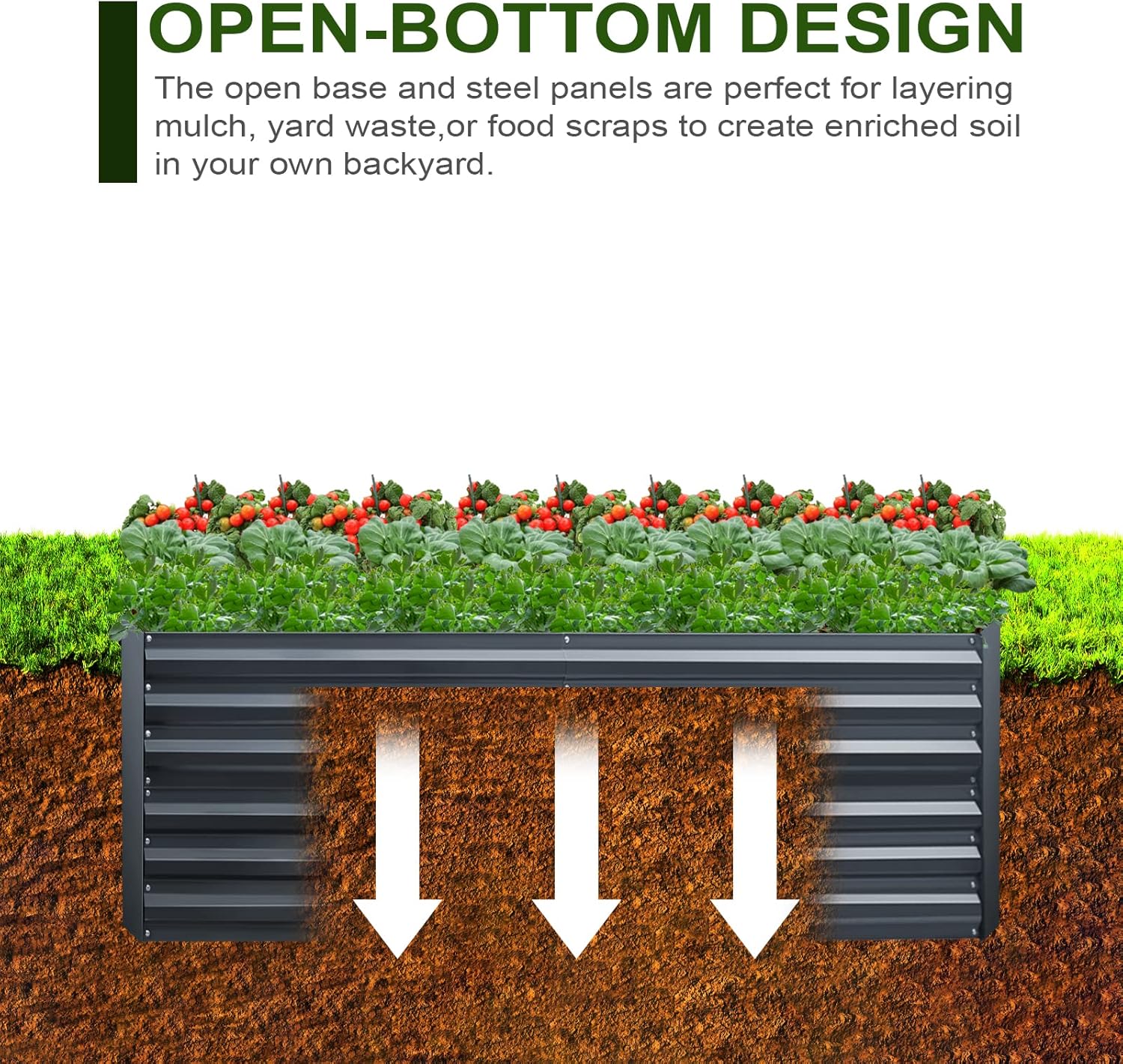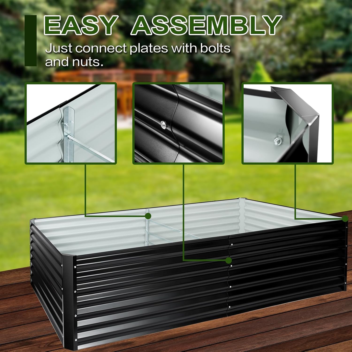 - Heavy-Duty Galvanized Steel: The 8x4x2 ft Galvanized Raised Garden Bed Kit is made with three-in-one layering consists of a durable steel core, followed by a protective galvanized layer, and topped with a robust colored coating, enabling it to withstand prolonged exposure to elements like sunlight, rain, and snow.