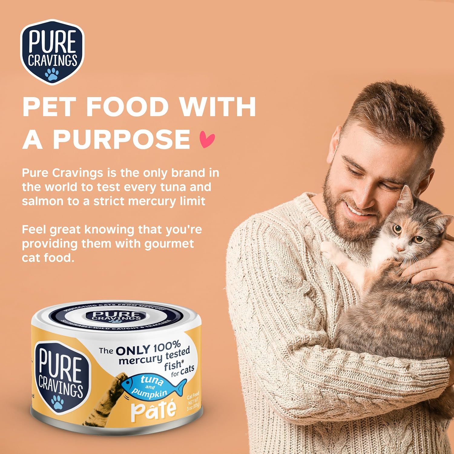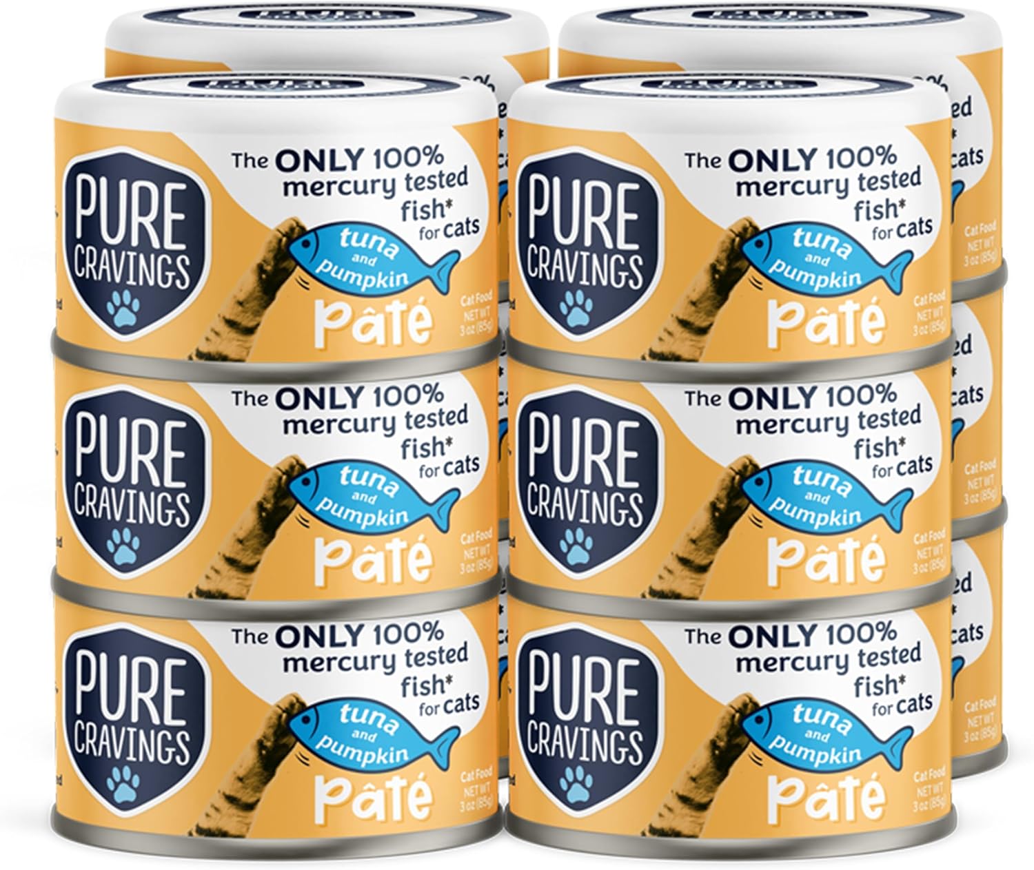 Tuna and Pumpkin Pate, Canned Wet Cat Food, 100% Mercury-Tested, Moist Can Fish, Grain-Free Protein, Non-GMO, 12 Pack