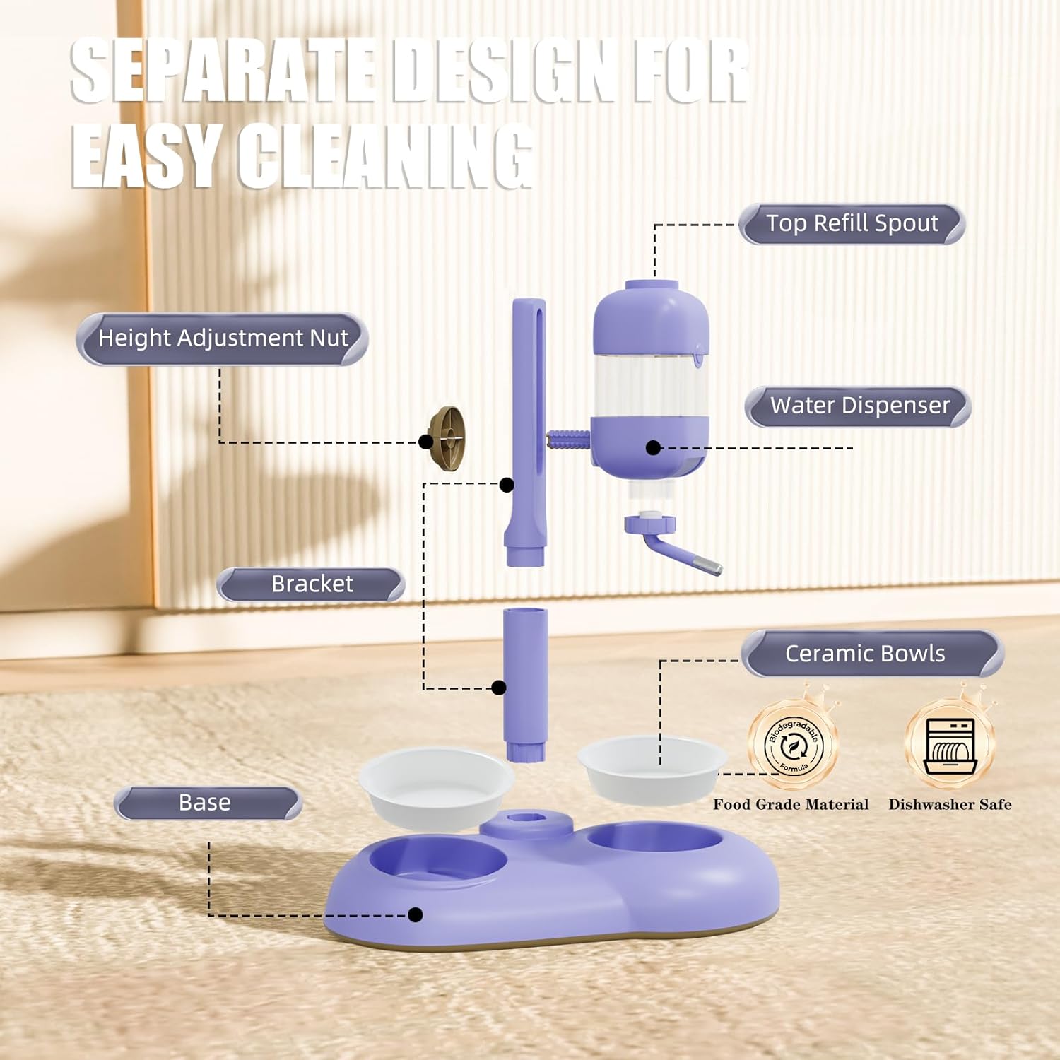 - 【Eco-friendly Material】MITOCAPY dog bowls are made of eco-friendly food-grade quality PC material, which is very safe for your pets. All parts can be easily disassembled and both two stainless steel dog bowls and ceramic dog bowls can be washed in the dishwasher.