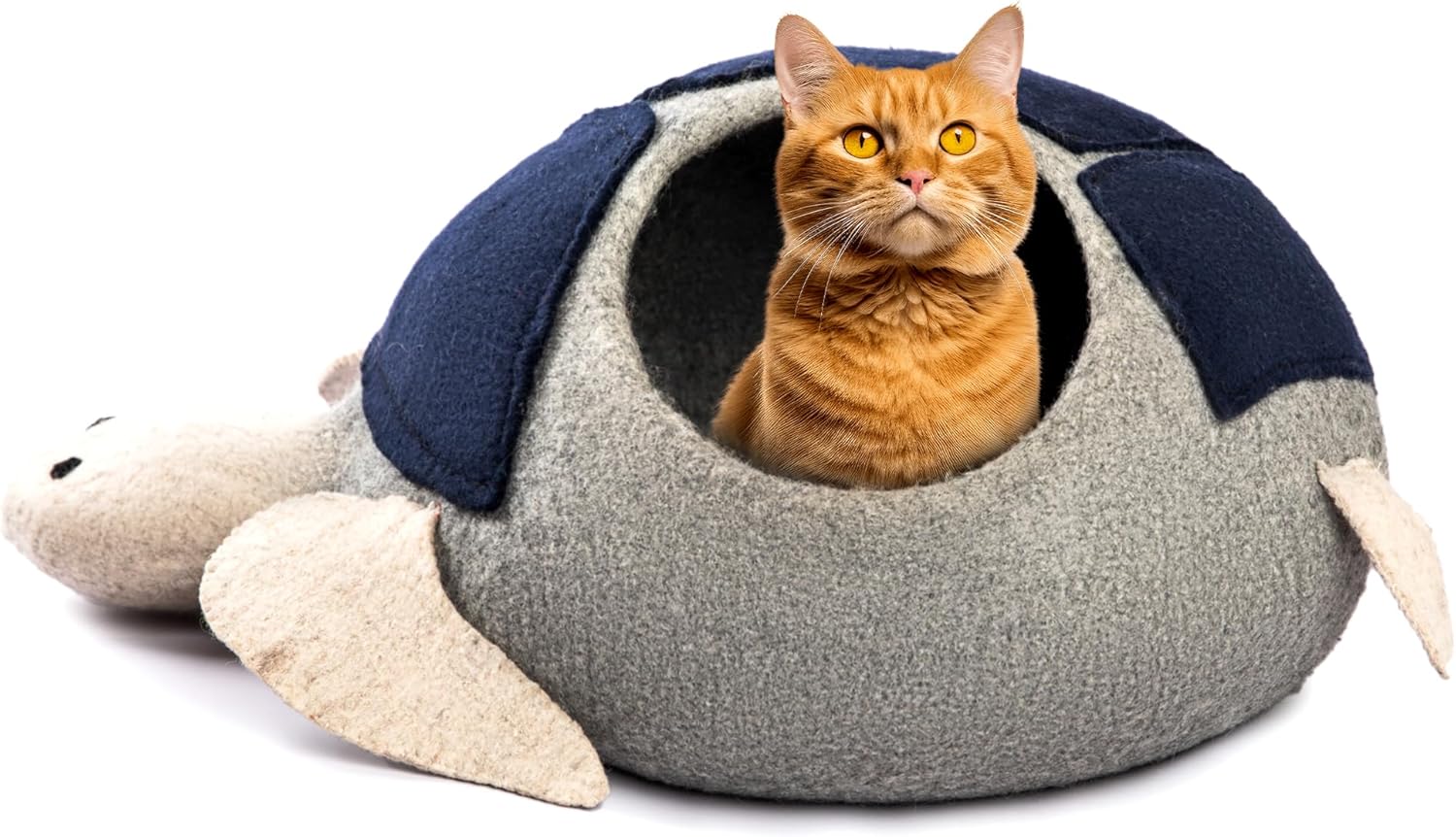 Luxurious Eco-Friendly Merino Wool Cat Cave Bed Sloth - Foldable Hideaway Pod for Indoor Cats - Premium Felt Kitten Beds - Covered Cat House for Ultimate Cozy Comfort by Woolygon