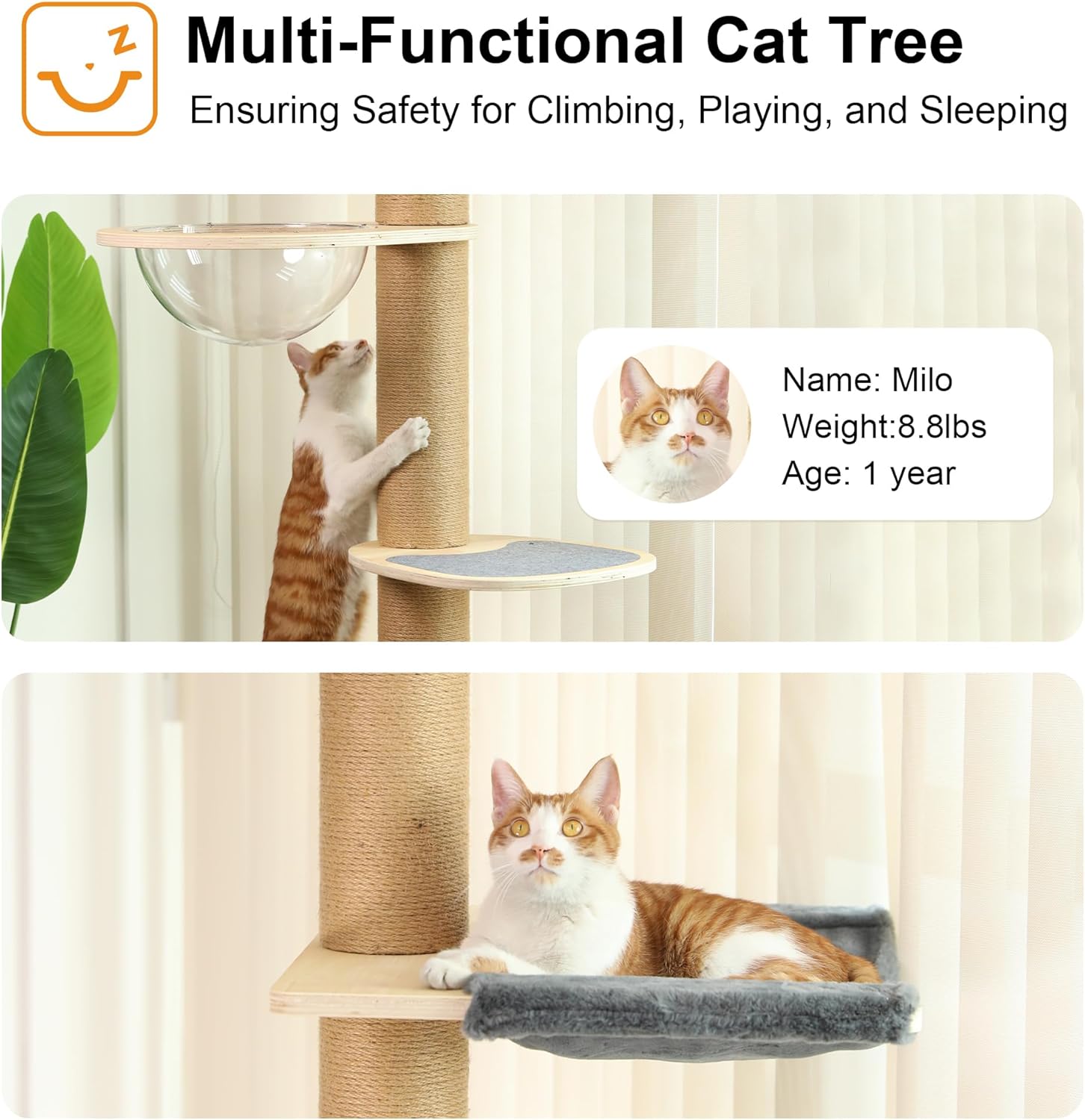 - SATISFY NATURAL INSTINCT - Cats naturally like heights, climbing to high places can burn off their excess energy and enhance their sense of security. This 6 level tall cat tree comes with ex-large soft hammock, 360°view transparent capsule, semi-enclosed cat condo and view perch. Cats can nap, scratch, and play in this cat climbing tree, one cat tree can satisfy all their needs.