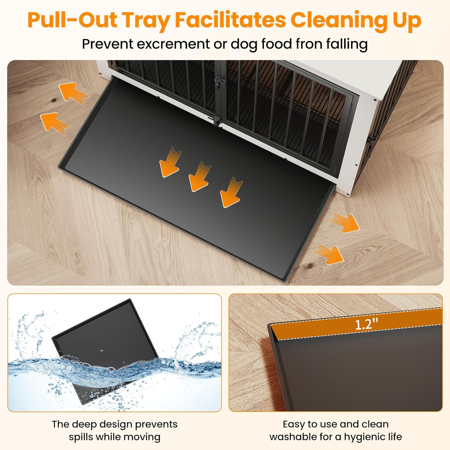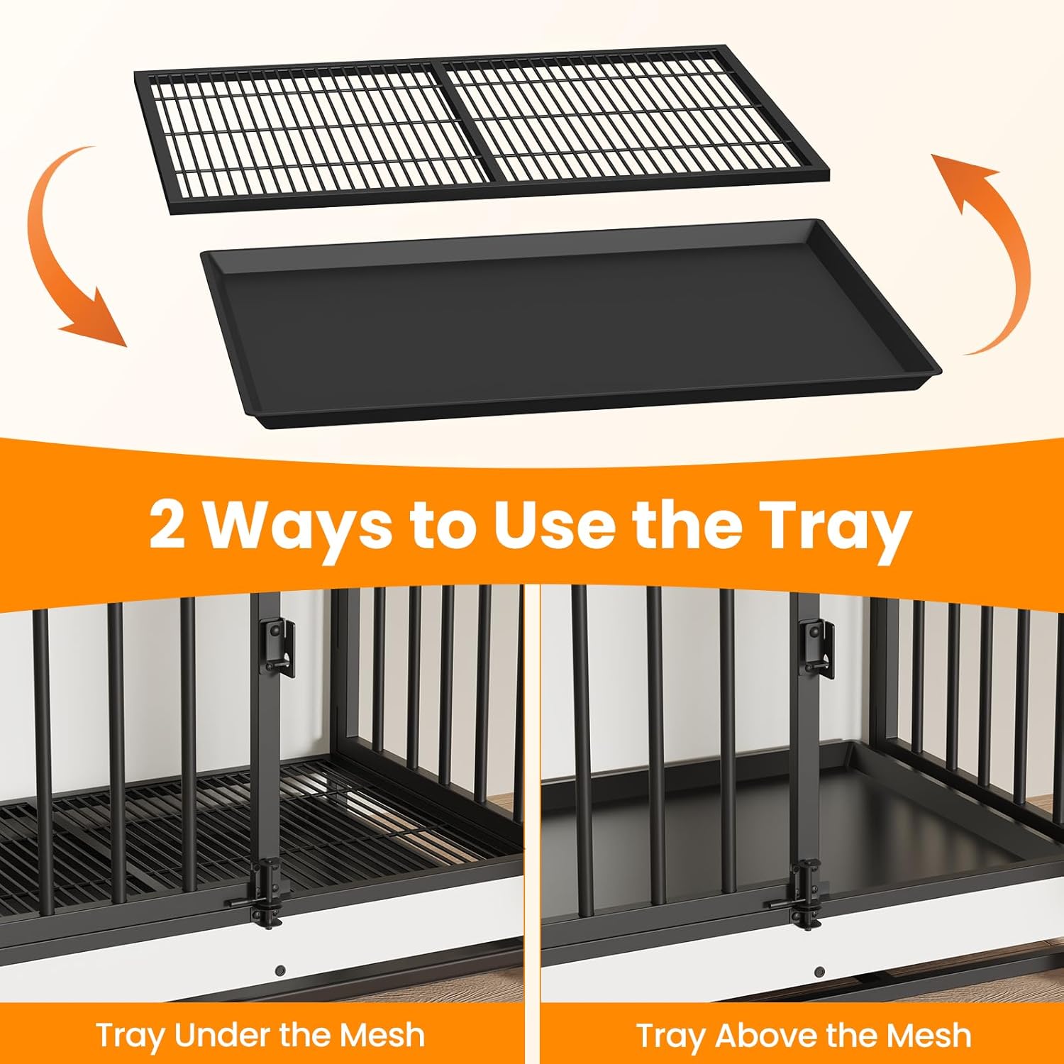 - 【Versatile Tray Usage】Put the tray under the bottom mesh to catch crumbs, fur, and dirt, keeping your dog's place clean without dirtying your floor, maintaining a tidy living space for your pet, or place the tray above the mesh to offer your dog a flat, comfortable surface—it's up to you