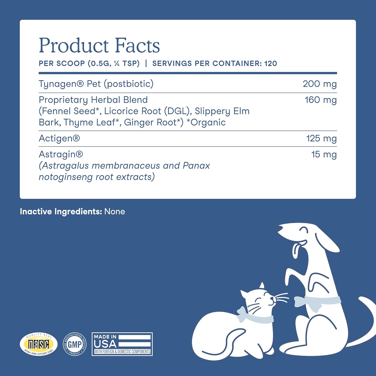 - No fillers: Promotes integrity of the gut lining and supports cat and dog gut health and immune system; formulated with Actigen prebiotics, Tynagen postbiotics, plus ginger root, fennel seed and licorice root extracts; digestive comfort and quality of life for your pet