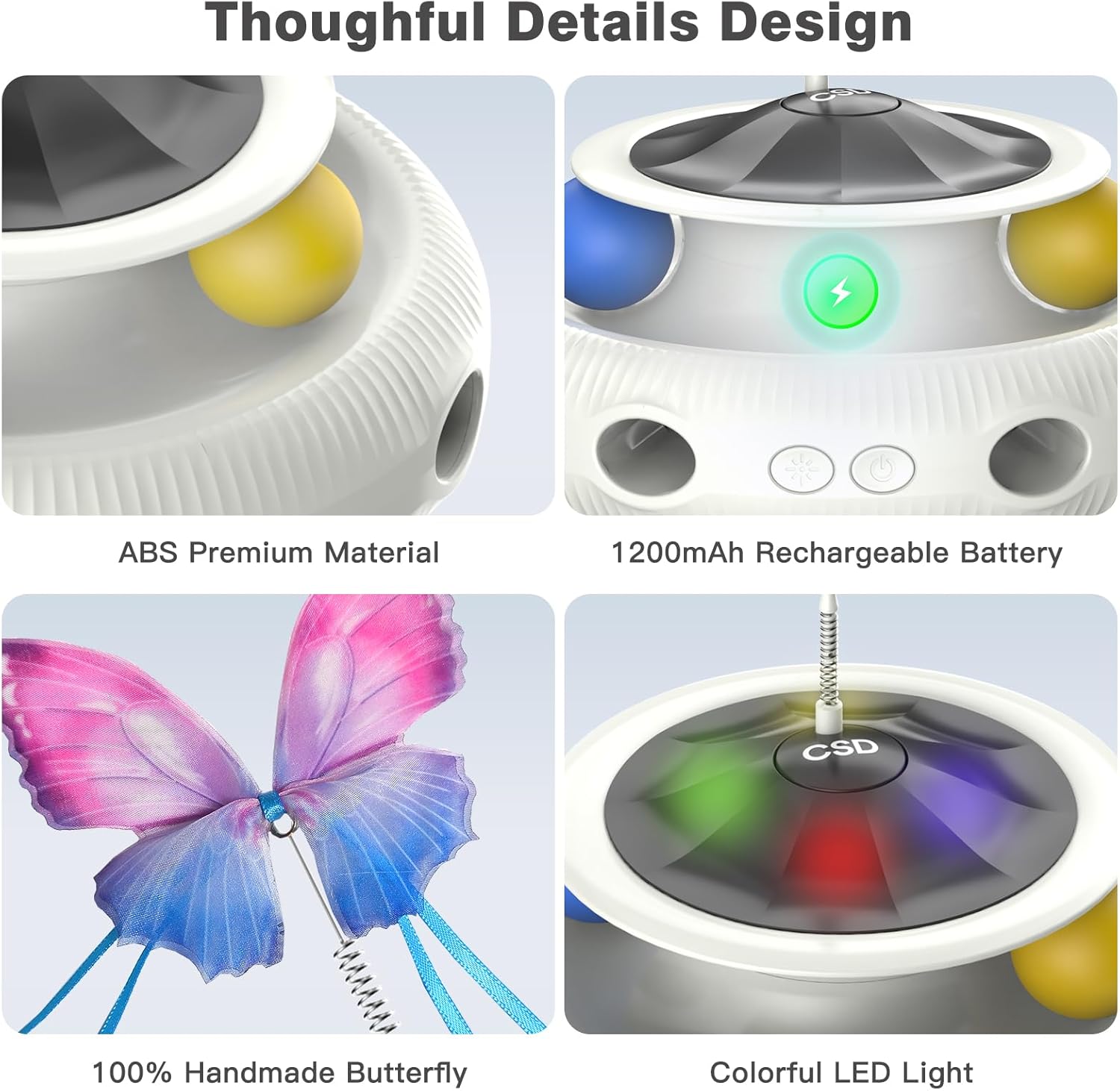 - Multi functional interactive cat toy:The cat stimulation toys for indoor cats combines with cat fluttering butterfly toy,track ball toy and random shooting feather toy,which provides cat's hunting instincts: chasing, pouncing,ambushing.And multiple play modes keep the kittens entertaining