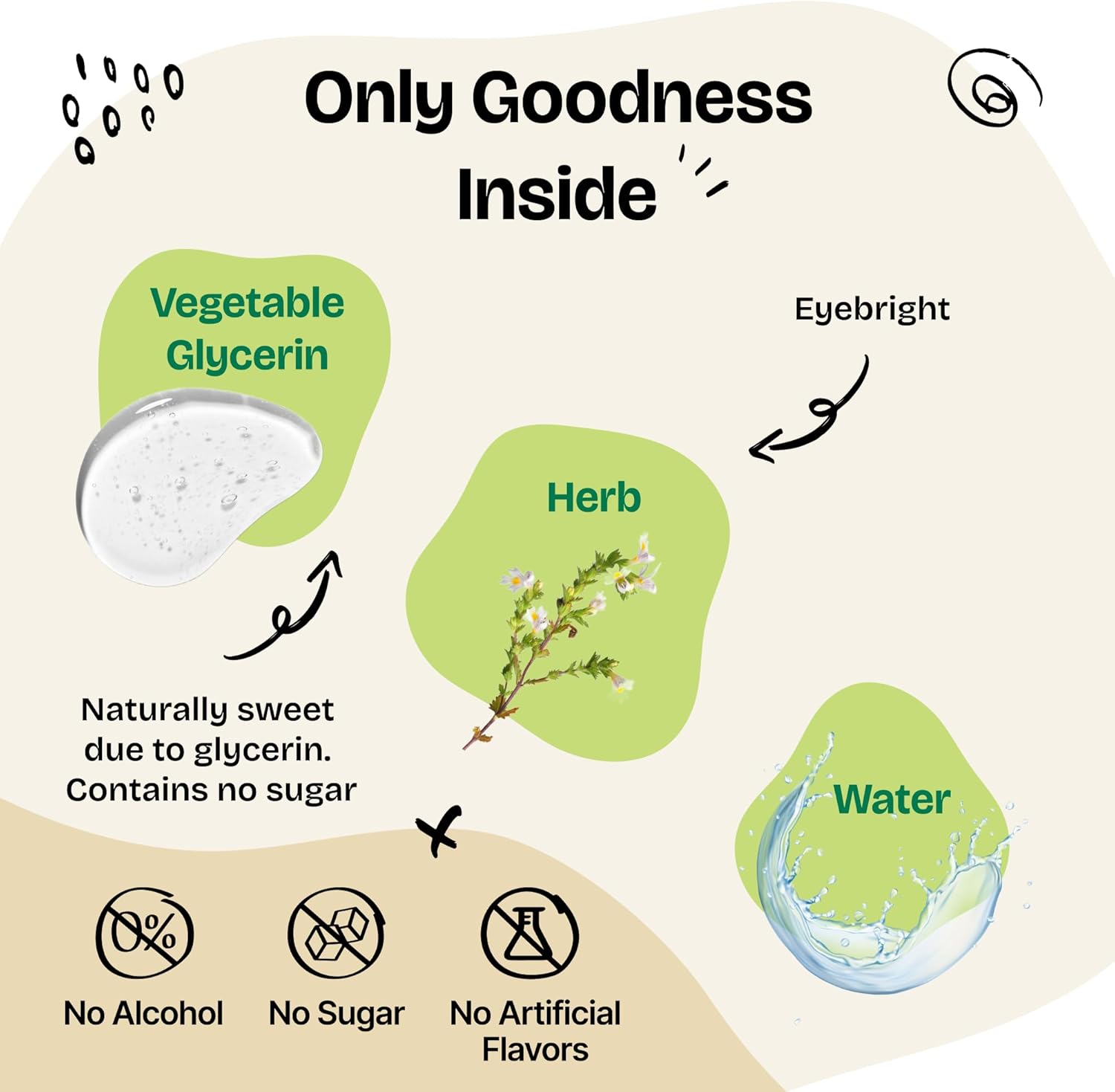 - Clean Formula: Our eyebright herb, purified water, and glycerin create a pure formula, free from sugar, alcohol, preservatives, artificial colors, or animal-derived ingredients.