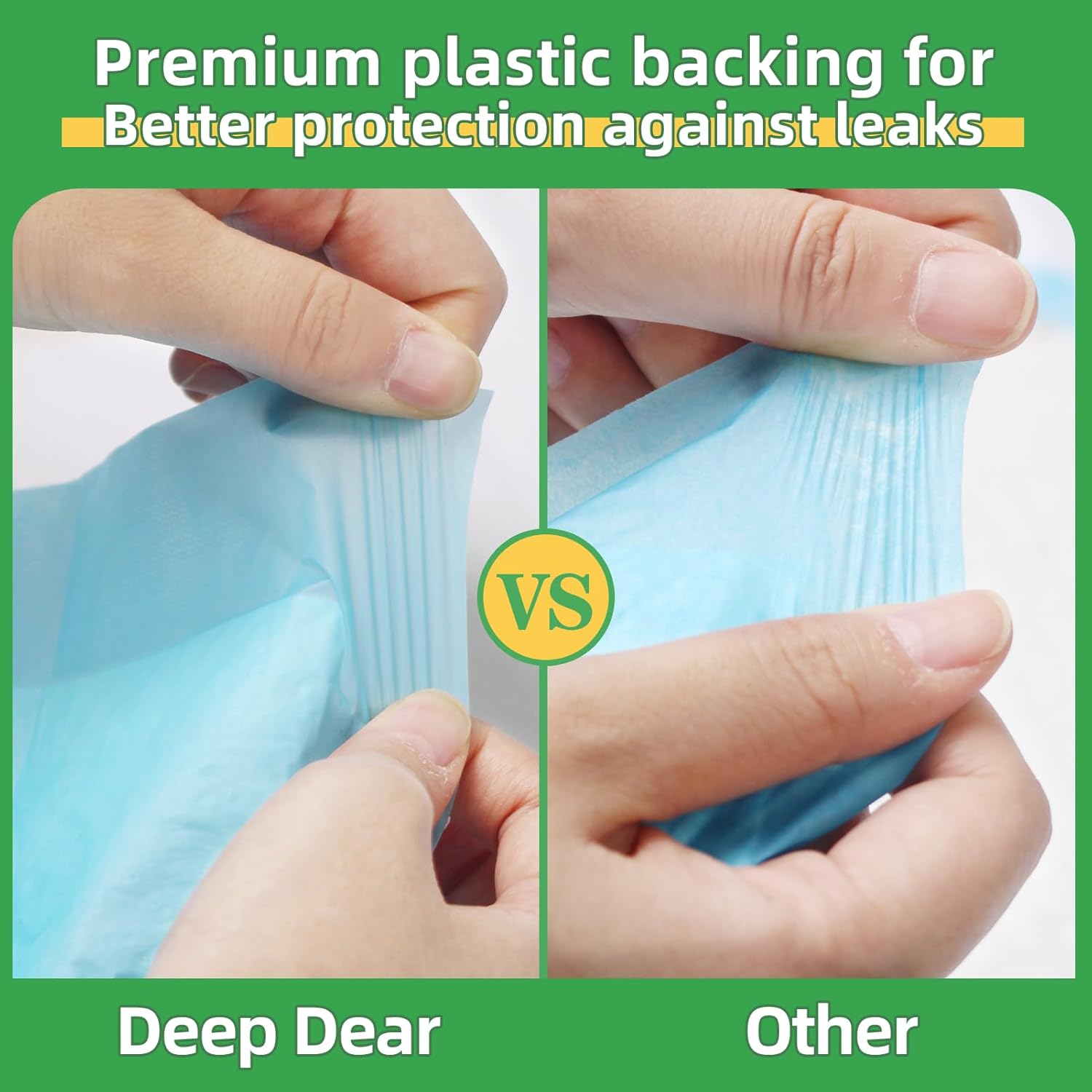 - High Quality Materials & All Day Protection: DEEP DEAR features premium materials, the upgraded pet pee pads for dogs are of excellent quality and resistant to scratch and tear. Our puppy training pads can be used for at least one day. You no longer have to worry about floor or furniture being damaged by pet's urine.
