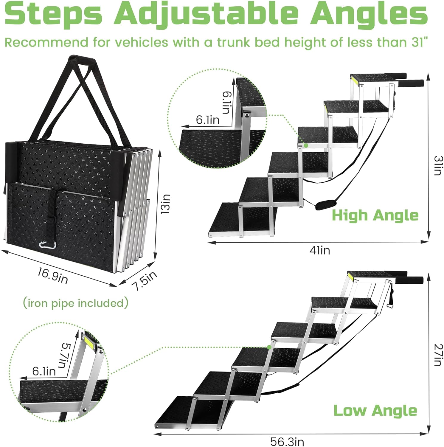 - Multi-Size Step Design: Choose between 5-step (98x67x43cm) and 6-step (106x80x43cm) configurations to best suit your pet's needs and vehicle height - perfect for small to large dogs with a weight capacity of up to 200 lbs.