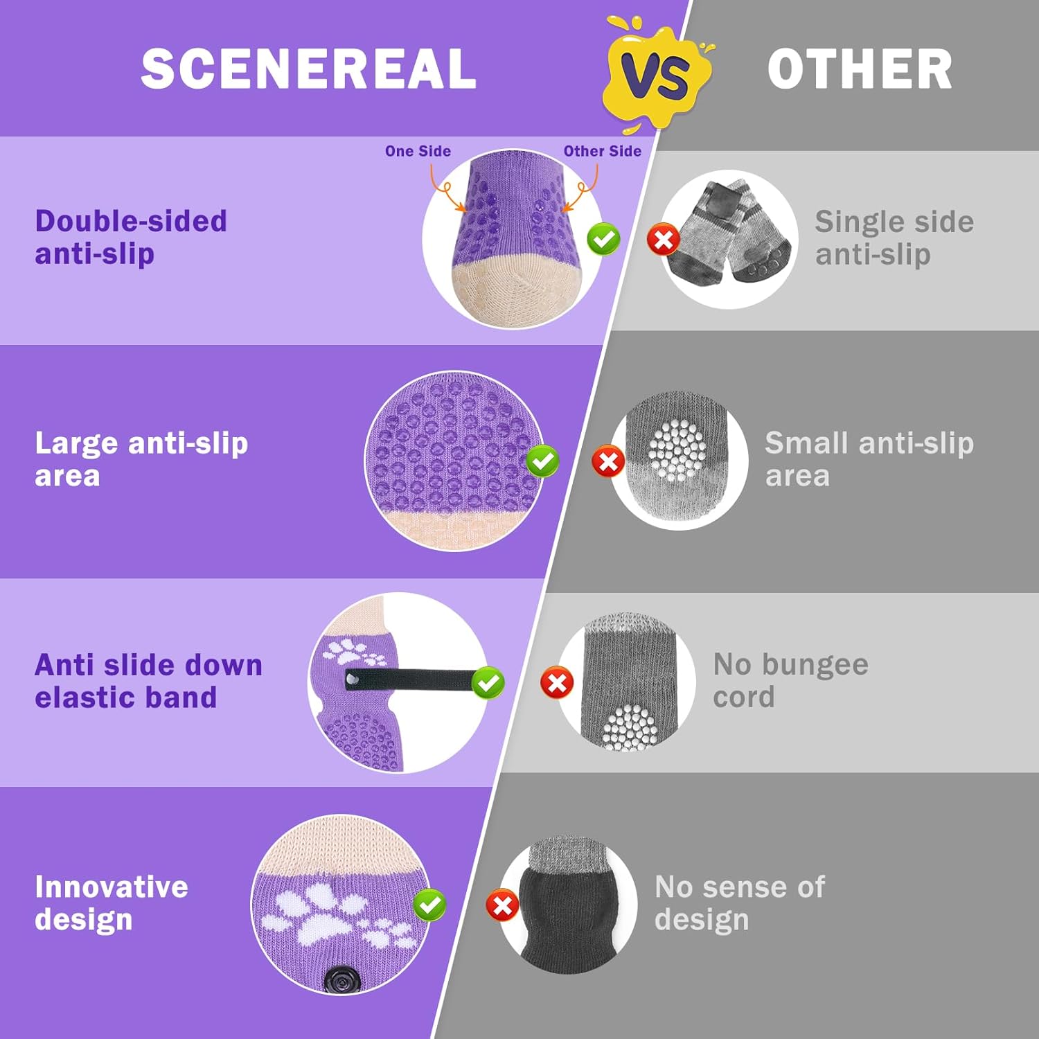 - MULTIFUNCTIONAL MULTI-SITUATION APPLICATION: This dog socks for hardwood floors can provide protection for your dog's paws from hot pavement, heat and other potential hazards in the summer. Wearing our socks also prevents dogs from licking and irritating wounds, further aiding in the healing of foot wounds.