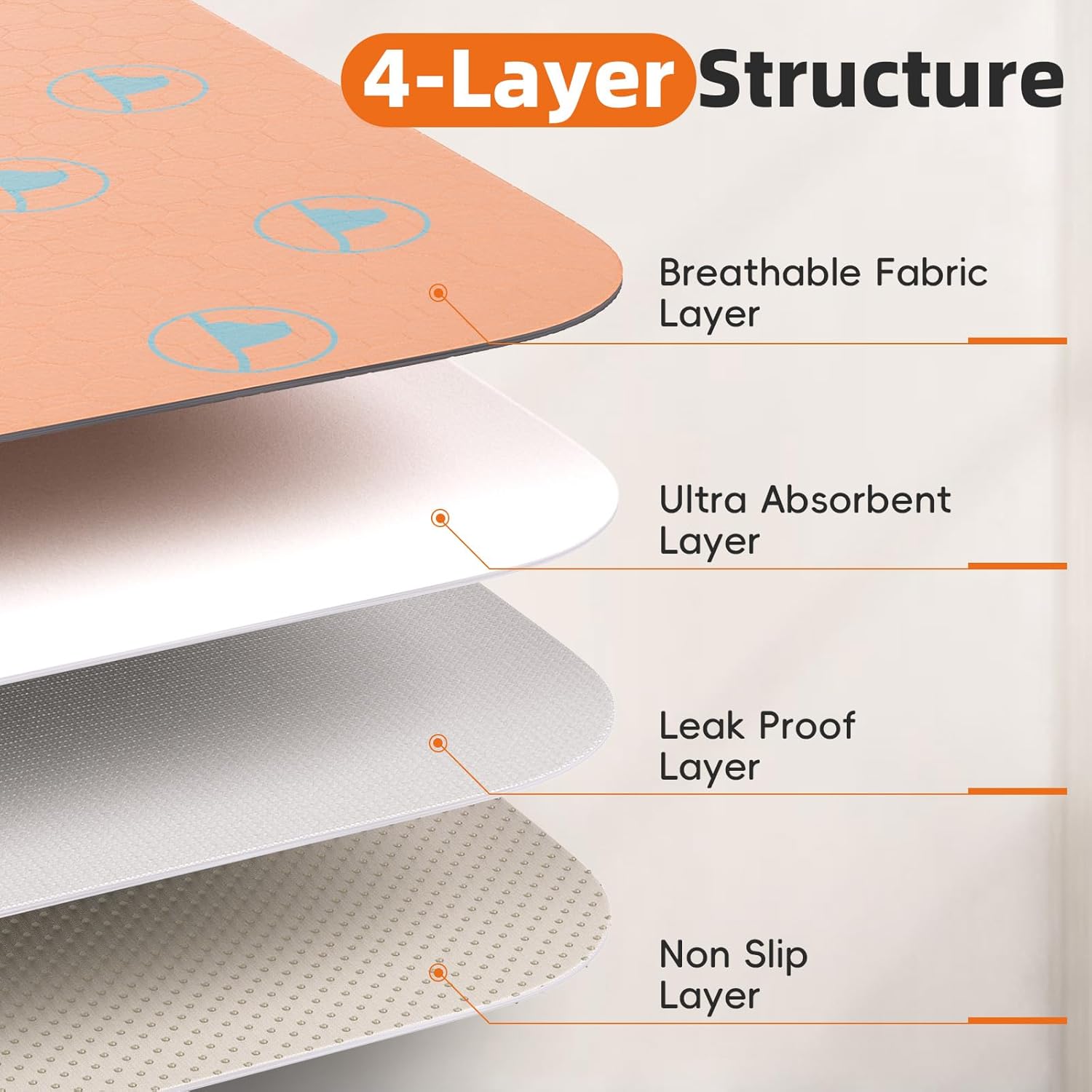 - 4-Layer Protection System: Breathable top layer guides liquid to the 10 mins quick-dry core, leak-proof barrier prevents seepage, and non-slip base stays in place. Shield floors, furniture, and car interiors from accidents