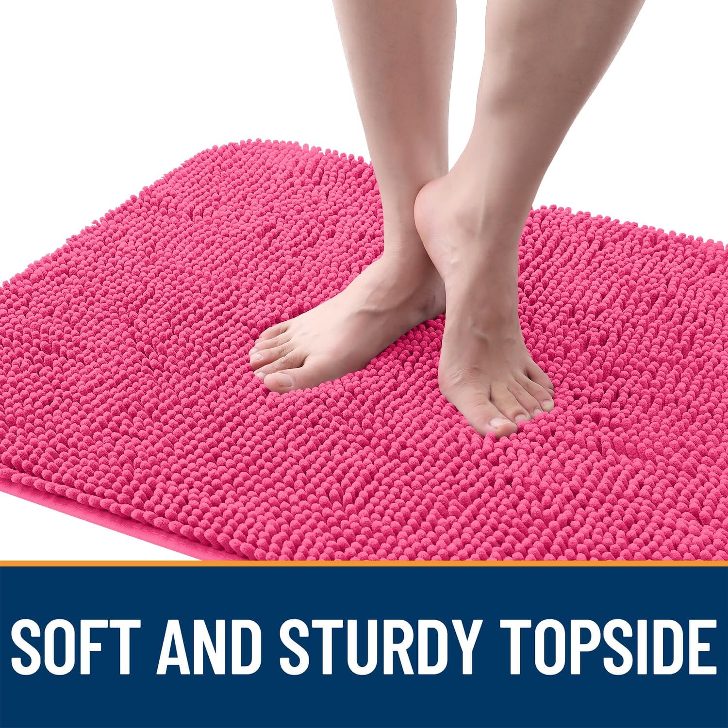 OLANLY Dog Door Mat for Muddy Paws 36x24, Absorbs Moisture and Dirt, Absorbent Non-Slip Washable Doormat, Quick Dry Chenille Mud Mat for Dogs, Entry Indoor Entryway Carpet for Inside Floor, Hot Pink