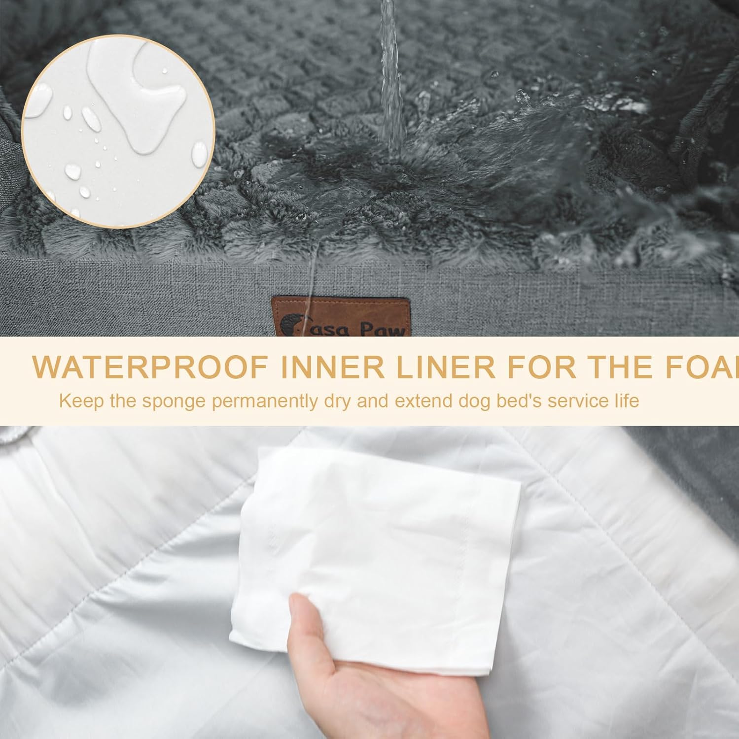 Orthopedic Dog Beds, Waterproof Memory Foam Large Sized Dog Bed with Sides, Non-Slip Bottom and Egg-Crate Foam Big Dogs Beds with Removable Washable Cover(Large,Grey)