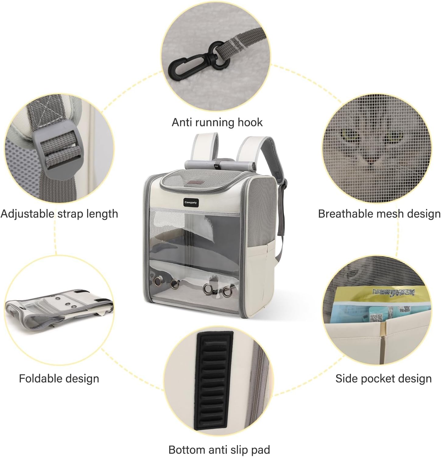 - [Better breathability]: Equipped with surrounding ventilation holes, upper and left and right mesh windows, with ventilation on all sides, allowing fresh air for each pet's mouth. Breathable and scratch resistant fabric, our expandable backpacks have the best breathability ever.