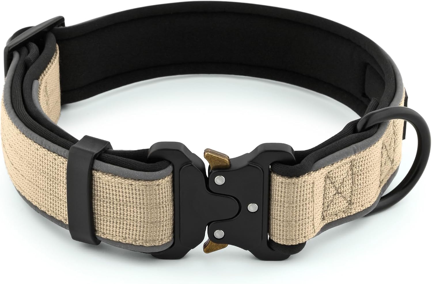 Plutus Pet Tactical Dog Collar, Reflective, Adjustable Heavy Duty Dog Collar, Soft Padded and Comfortable, for Small Medium and Large Dogs (Beige, XS)