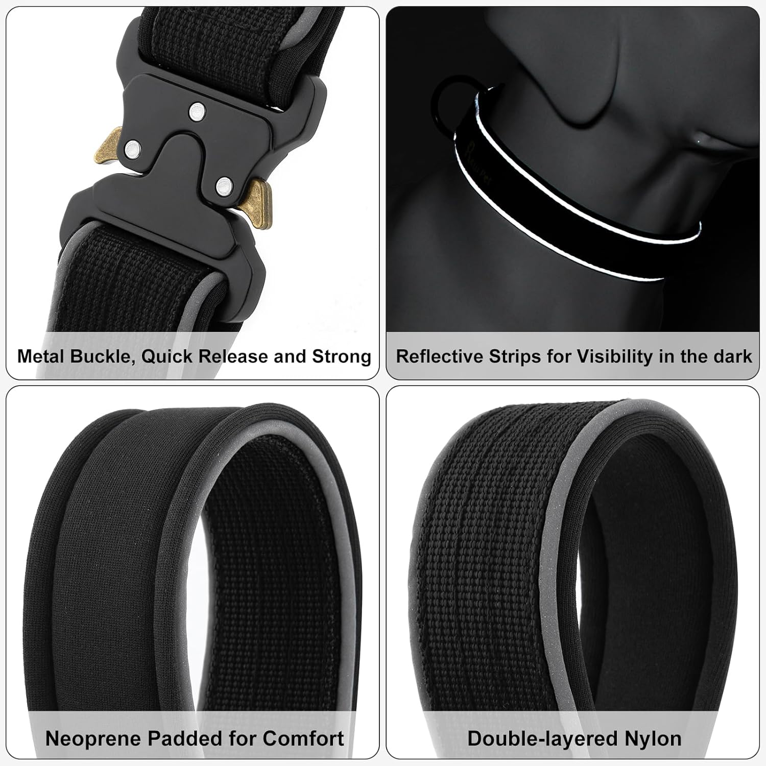 Plutus Pet Tactical Dog Collar, Reflective, Adjustable Heavy Duty Dog Collar, Soft Padded and Comfortable, for Small Medium and Large Dogs (Black, XS)