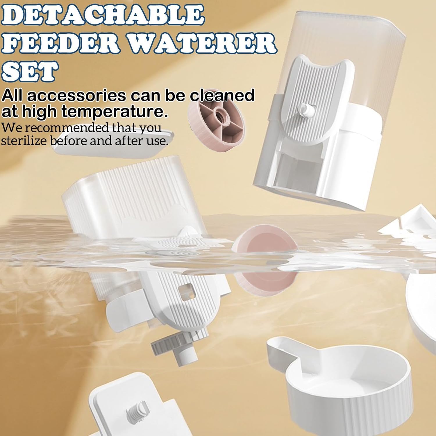 - And they are easy to install by simply snapping the swivel clasp onto the cage, automatic rabbit water feeder is suitable for most pet cages. We recommend that cage wire be spaced more than 3 cm/1.2 inches horizontally and 3.8 cm/1.5 inches vertically