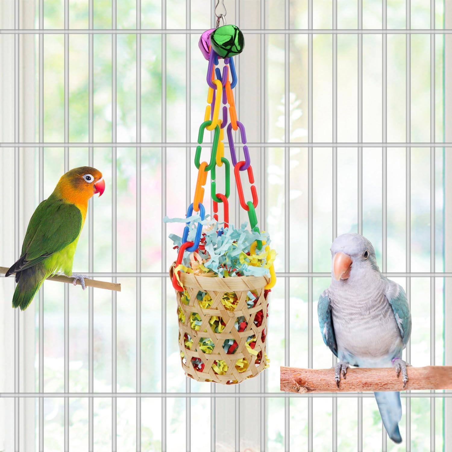 Wontee Bird Toys Colorful Shredding Crinkles Foraging Toys Natural Sola Ball for Parrots Cockatiels Conures Parakeets Budgies Senegal (Bamboo Basket (1 Pack))